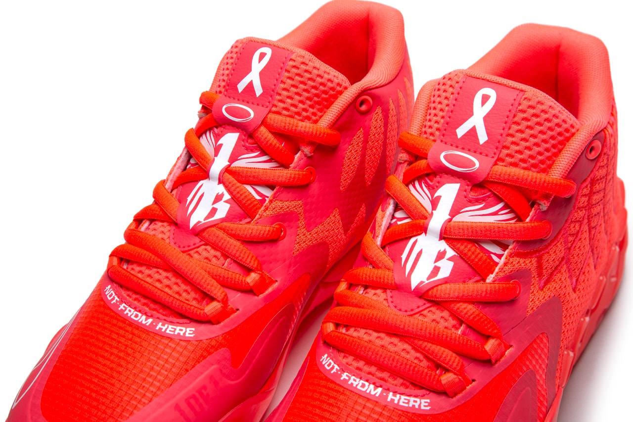 拉梅洛·鲍尔自进入联盟以来就一直有着不错的表现,PUMA 也随之为其推出了签名鞋,超高的颜值也收获了不俗的人气。 近日,为响应国际乳癌防治月,PUMA 携手拉梅洛·鲍尔以 PUMA MB.01 为蓝本,推出全新配色。 整体采用鲜艳红色覆面,粉色妆点,十分亮眼夺目,同时呼应乳癌防治主题。 鞋面采用 3D 打印的创新鞋面结构。 鞋舌处印有乳癌防治代表丝带,彰显鞋款身份。 最后大红大底收尾,完善整双鞋设计。 根据目前消息,全新 PUMA MB.01 BCA 暂无具体登场信息释出。