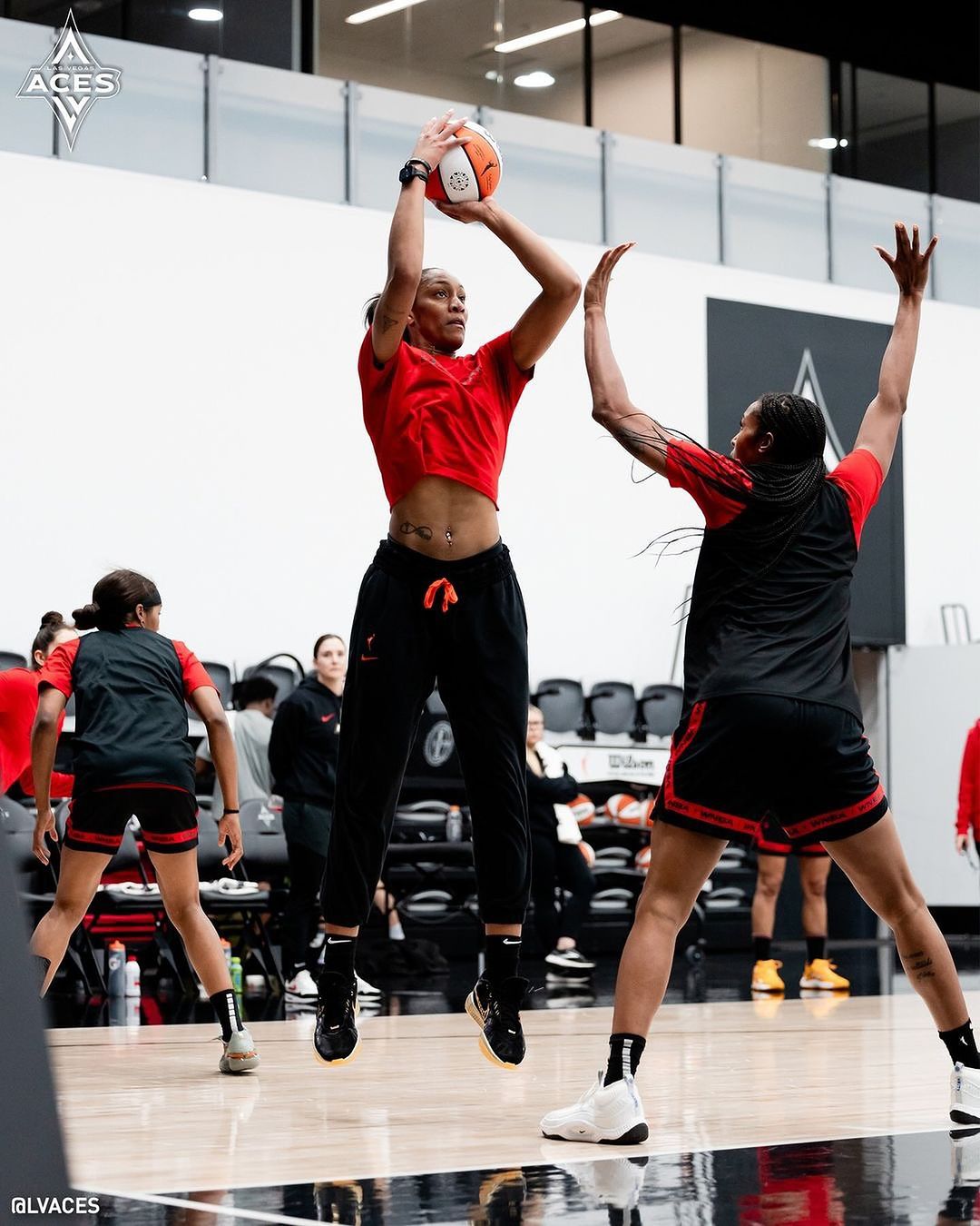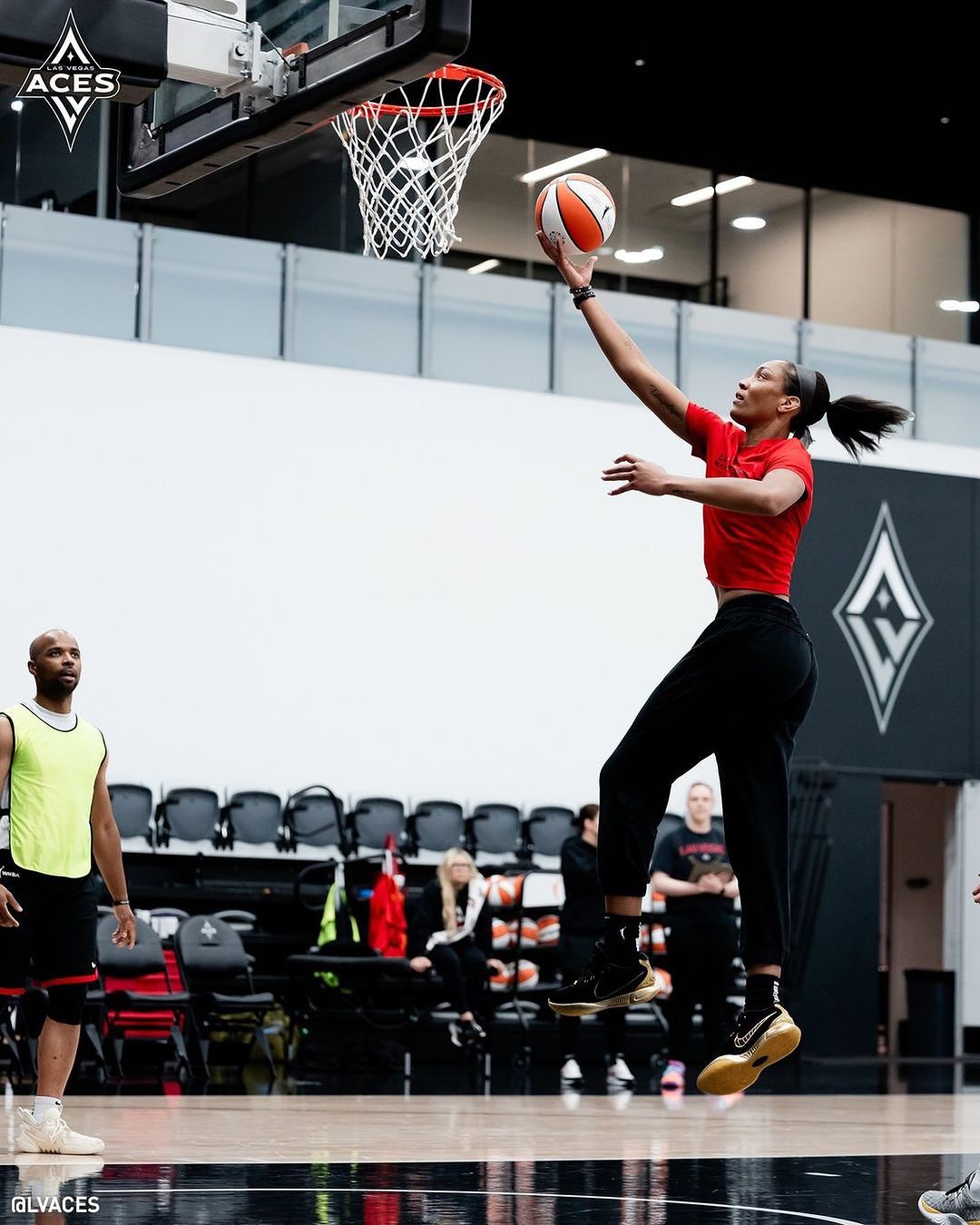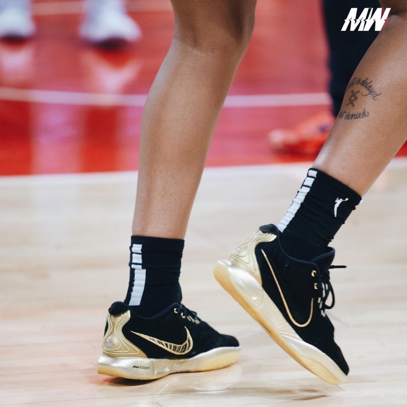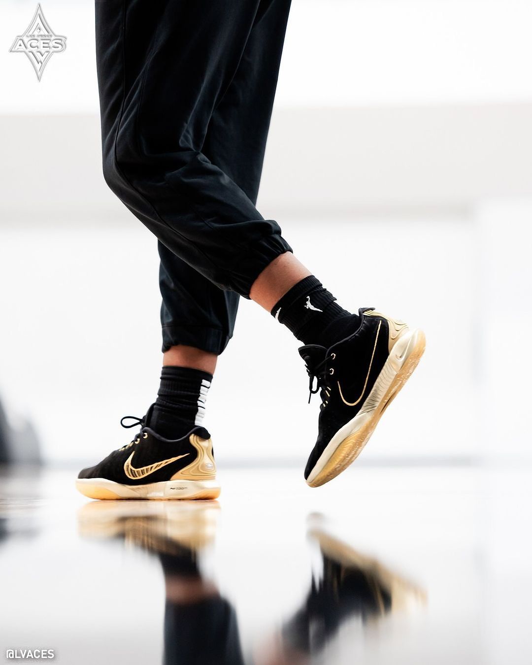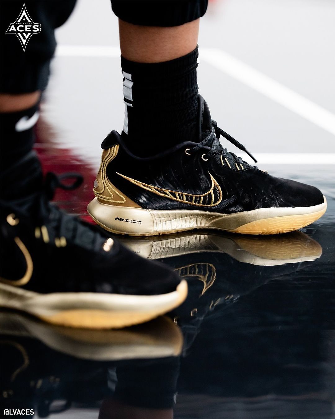 今天凌晨刚刚结束的第一场 WNBA 总决赛上,拉斯维加斯王牌队球星阿贾·威尔逊再度上脚曝光了一双从未见过的「黑金」配色,重新诠释什么叫又帅又能打。
