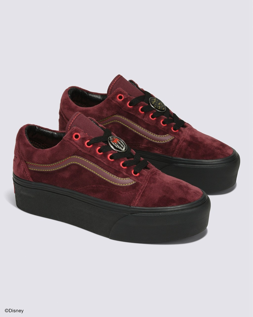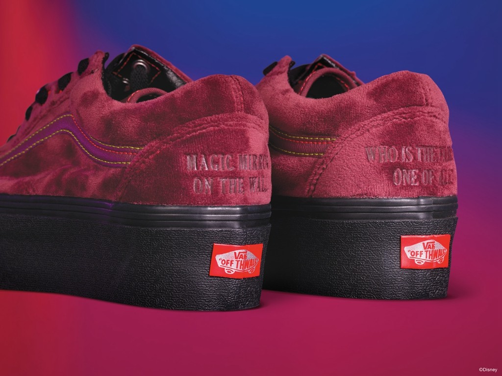 Old Skool Stack 鞋面采用天鹅绒,鞋后帮的浮雕文字则以迪士尼动画电影《白雪公主和七个小矮人》为灵感。