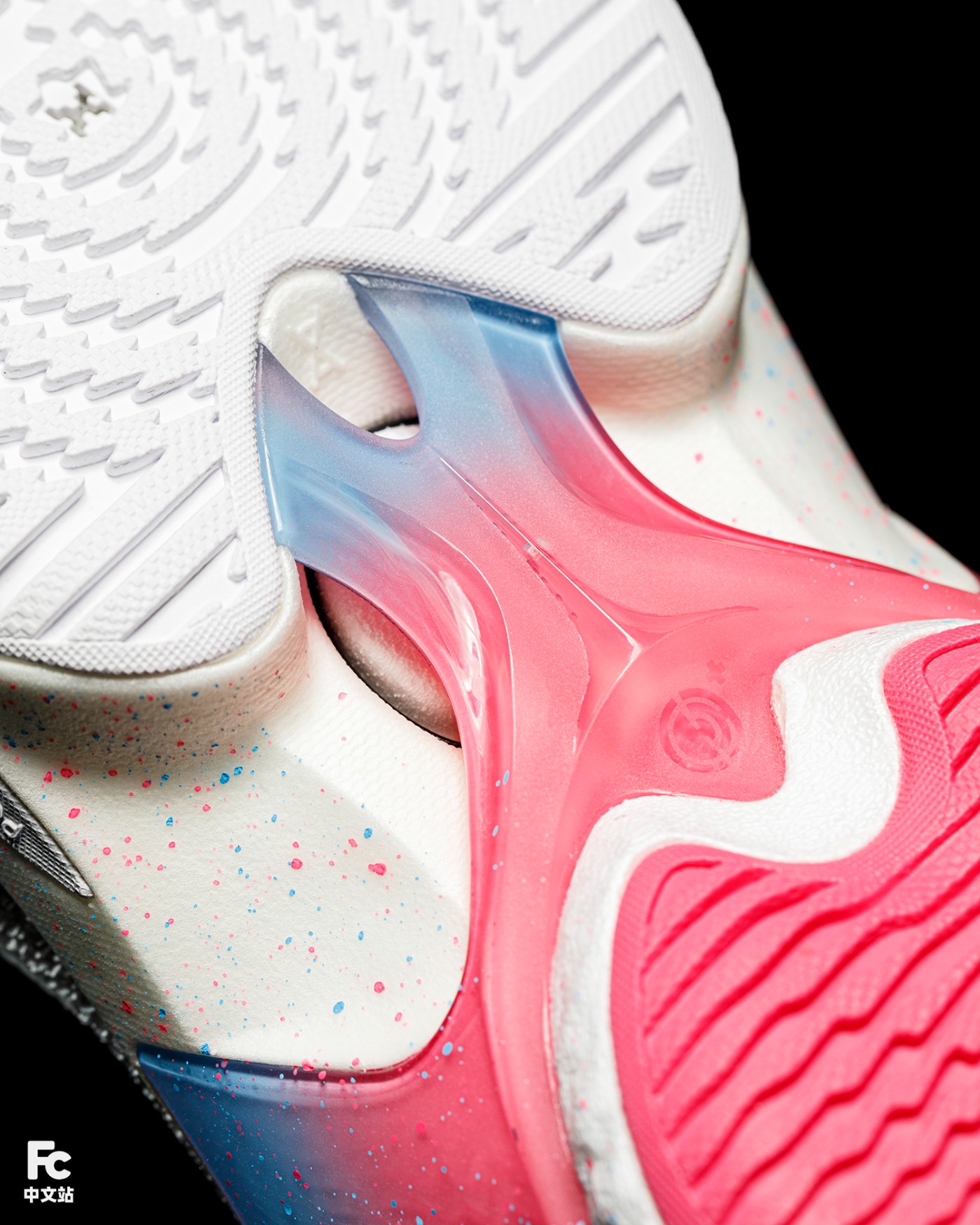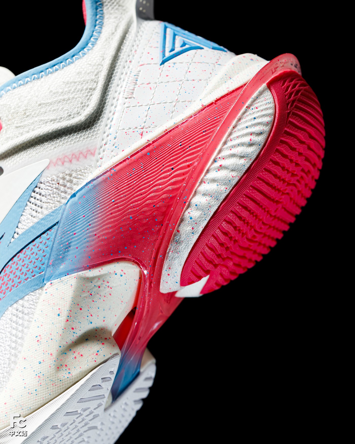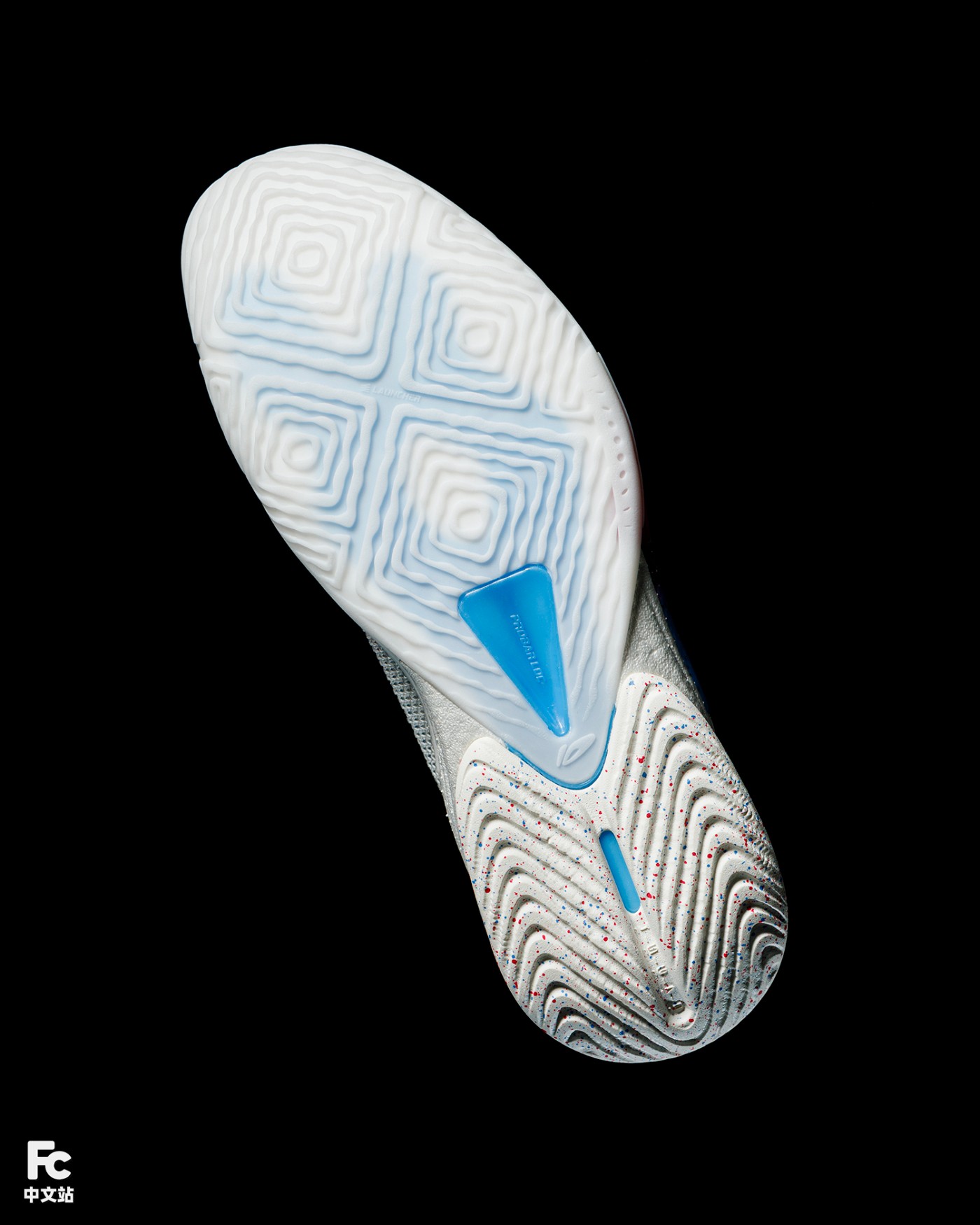 后侧采用 HC LOC 高性能透明材料科技,不仅比传统橡胶重量降低 57%,防滑性能还提升了 15%,带来更加轻盈的穿着体验和更强劲的运动表型。