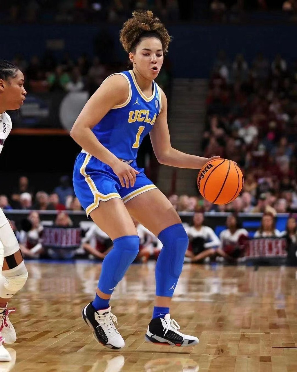 比如知名的 UCLA 女篮成员们在拍摄时,就上脚了最新的 Air Jordan 38 PE 配色。