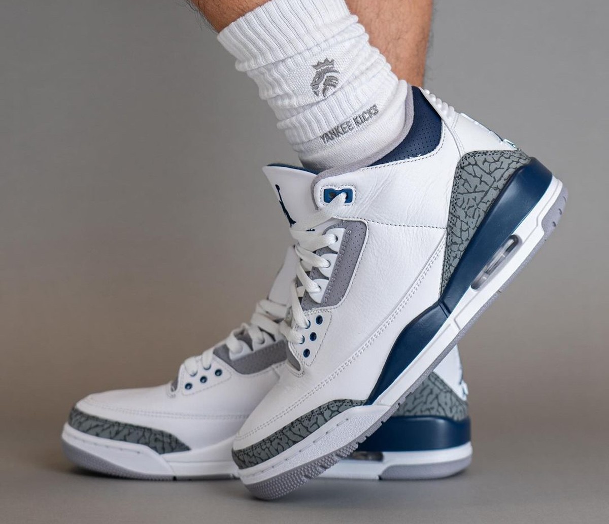 近期,全新「午夜蓝」Air Jordan 3 最新上脚图曝光,不知道各位能给打几分?