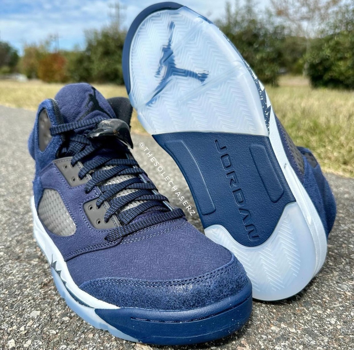 近期,一双全新的 Air Jordan 5 “Navy” 实物图曝光,颜值依然能打。