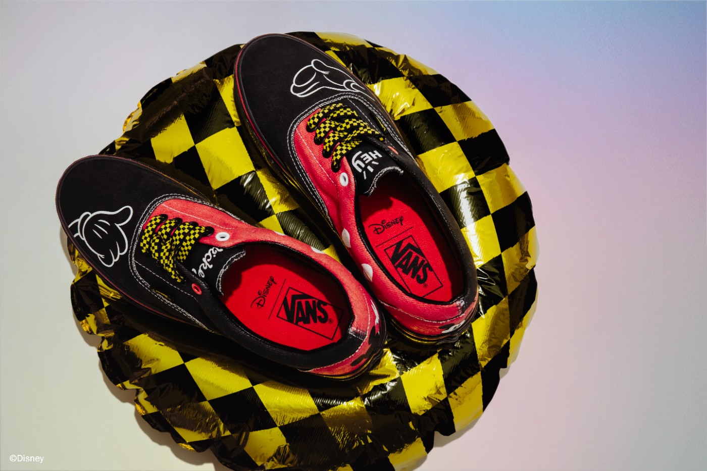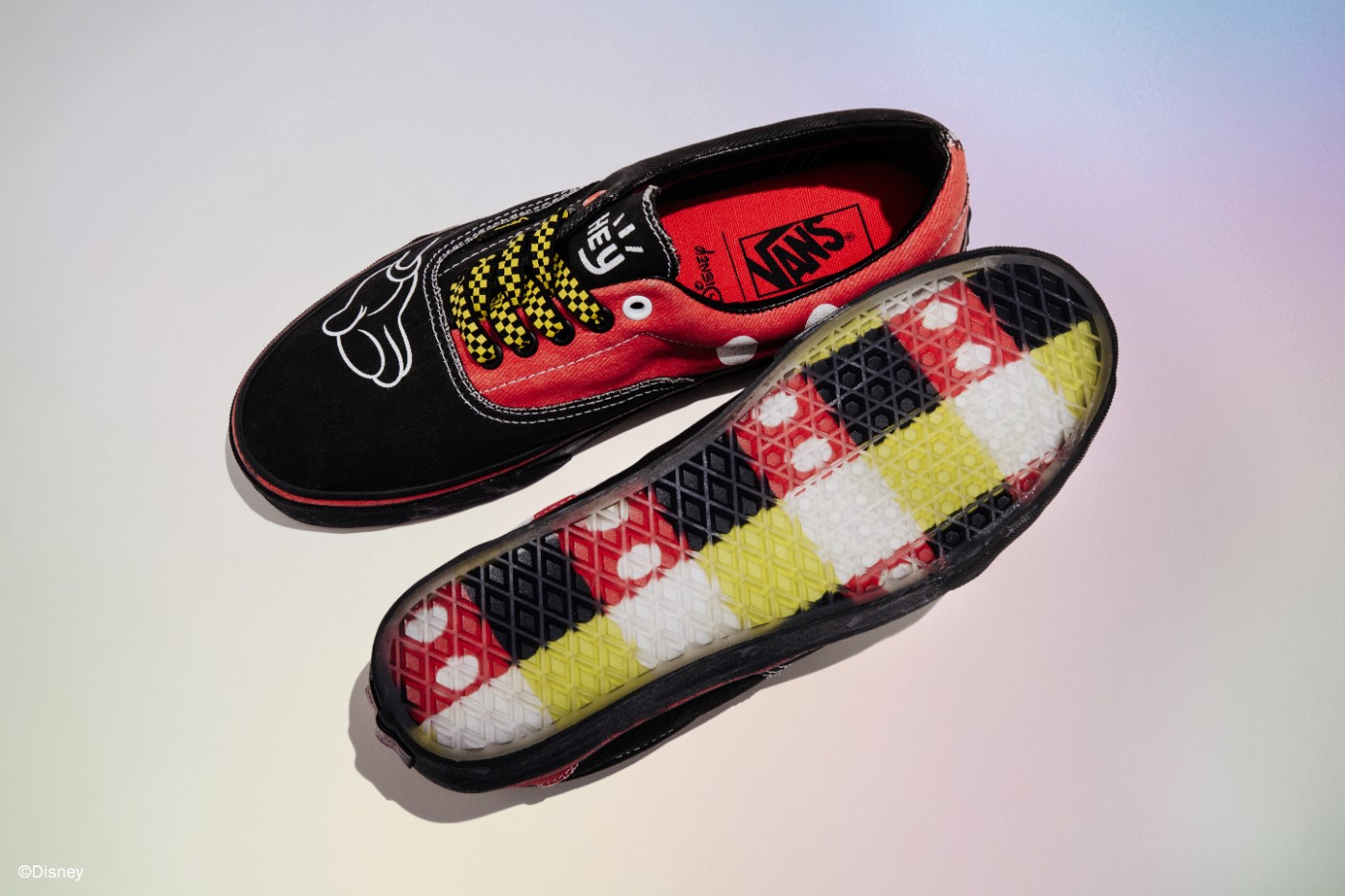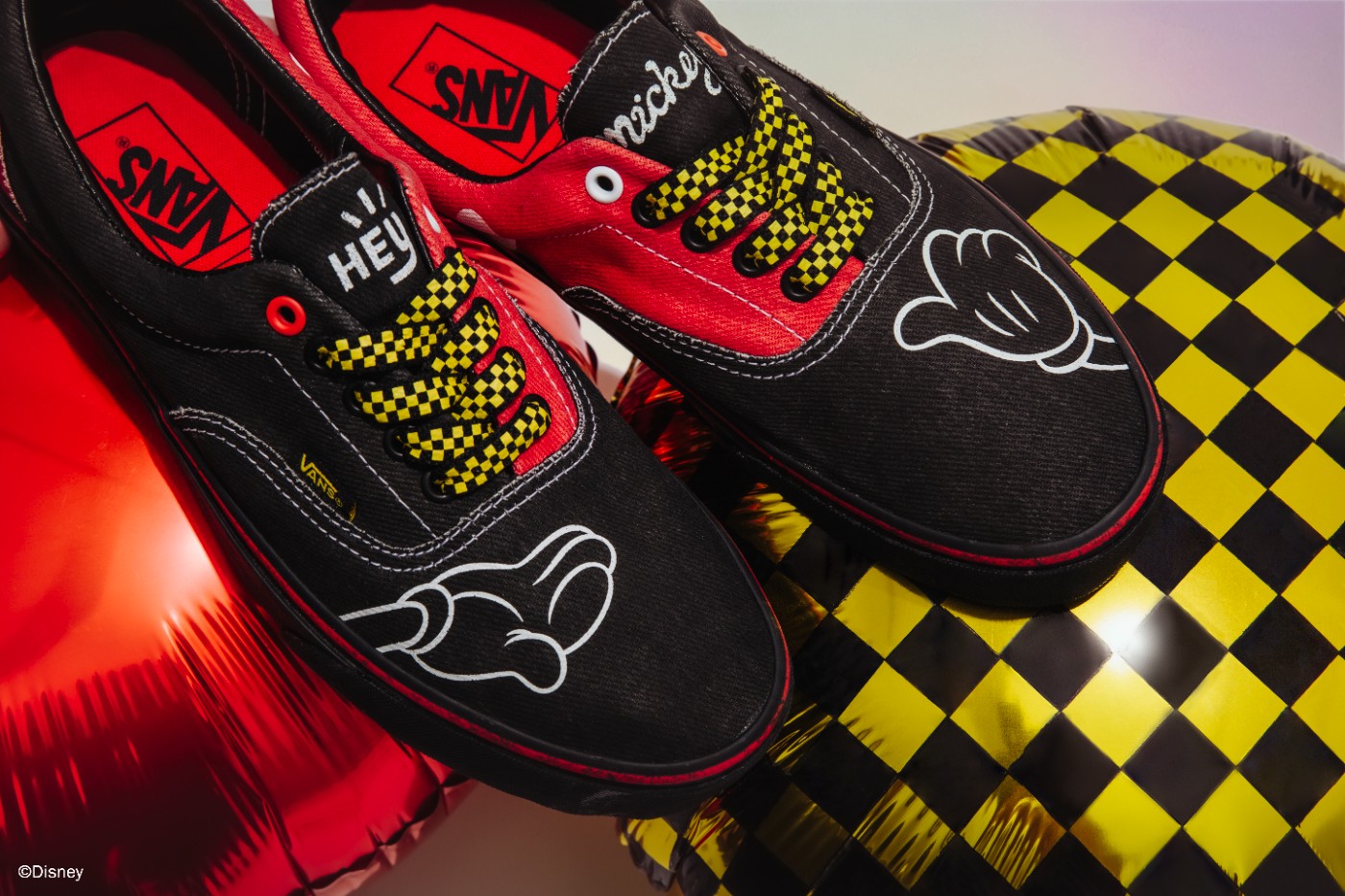 第一双以 Era 鞋型为蓝本,米奇人物为主题,采用经典红黑配色点缀,还原米奇这一角色形象。