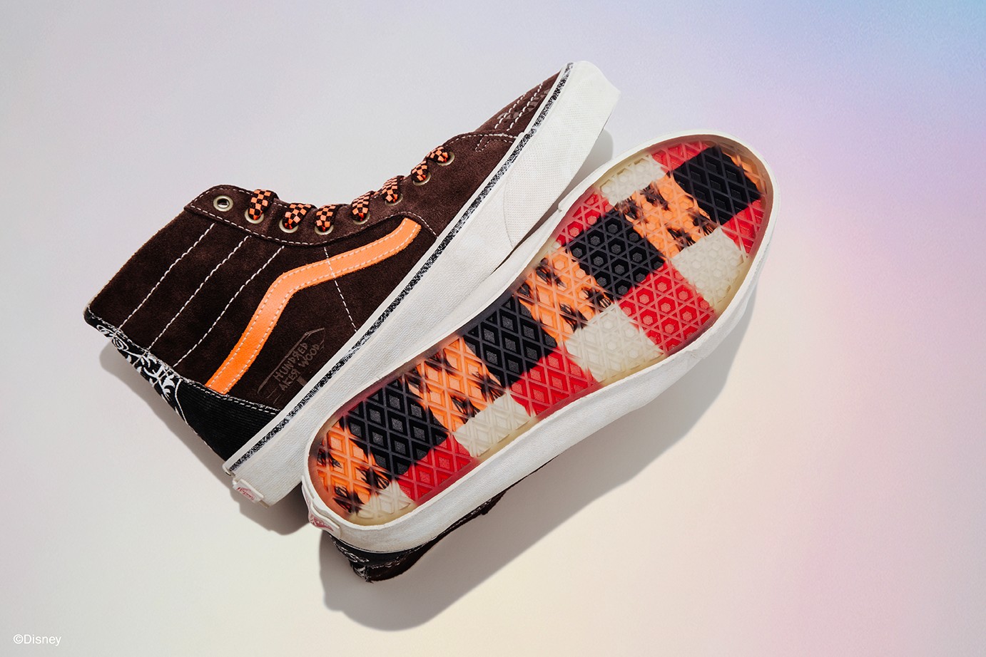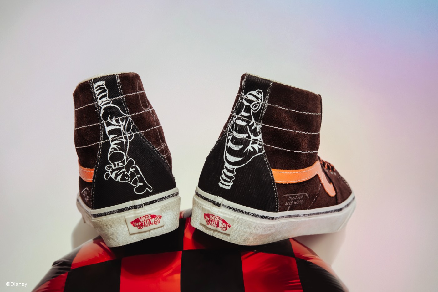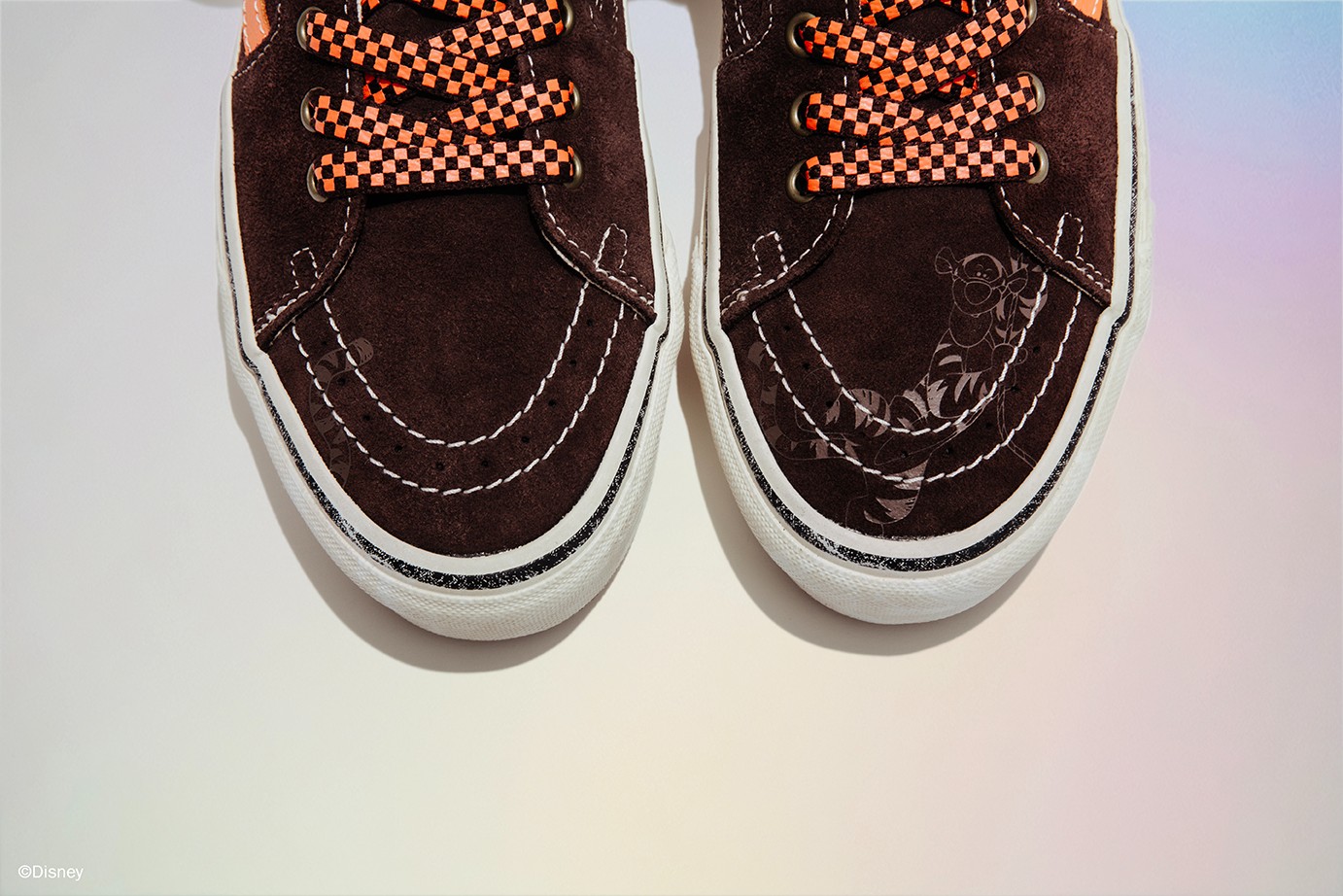第三双则是将跳跳虎融入进 Sk8-Hi 鞋款中,大面积棕色搭配橙色点缀,鞋面处还要跳跳虎印花。