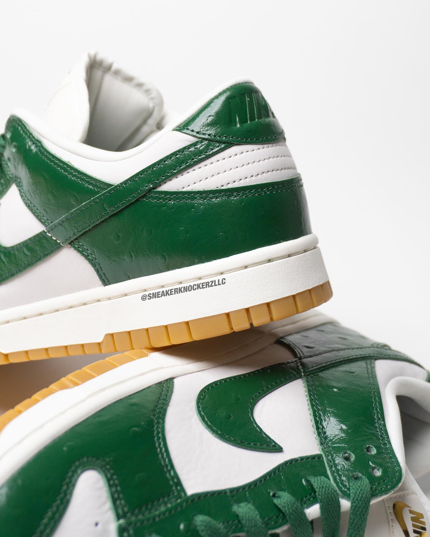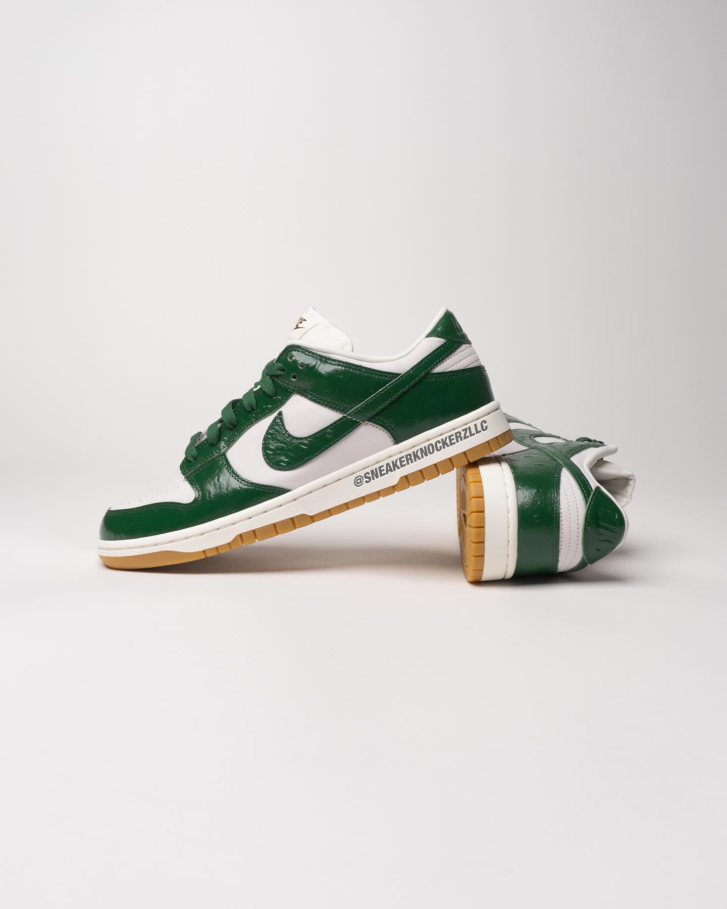 鞋面采用漆皮材质打造,质感上与以往的 Nike Dunk Low 不同。