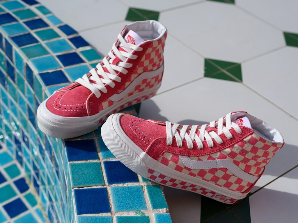 Sk8-Hi 38 DX 也有两双亮眼配色,均以最深入人心的棋盘格覆盖,再加上讨喜的蓝、粉双色,简直情侣必备。