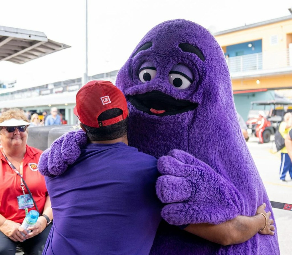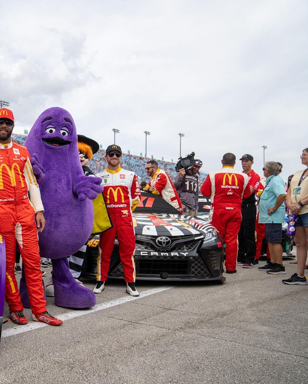 将麦当劳经典角色 “奶昔大哥” 和 “汉堡神偷” 作为图案装饰在车体上,成为赛道上最吸睛的存在。