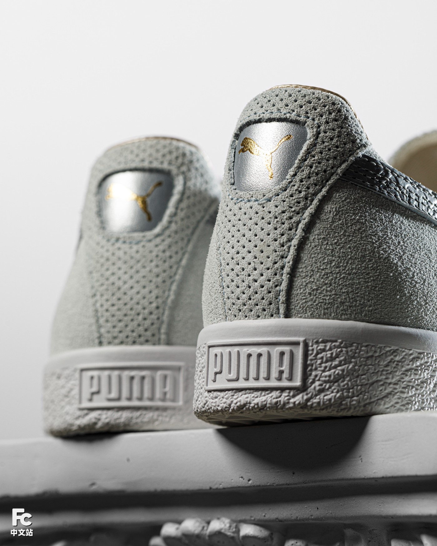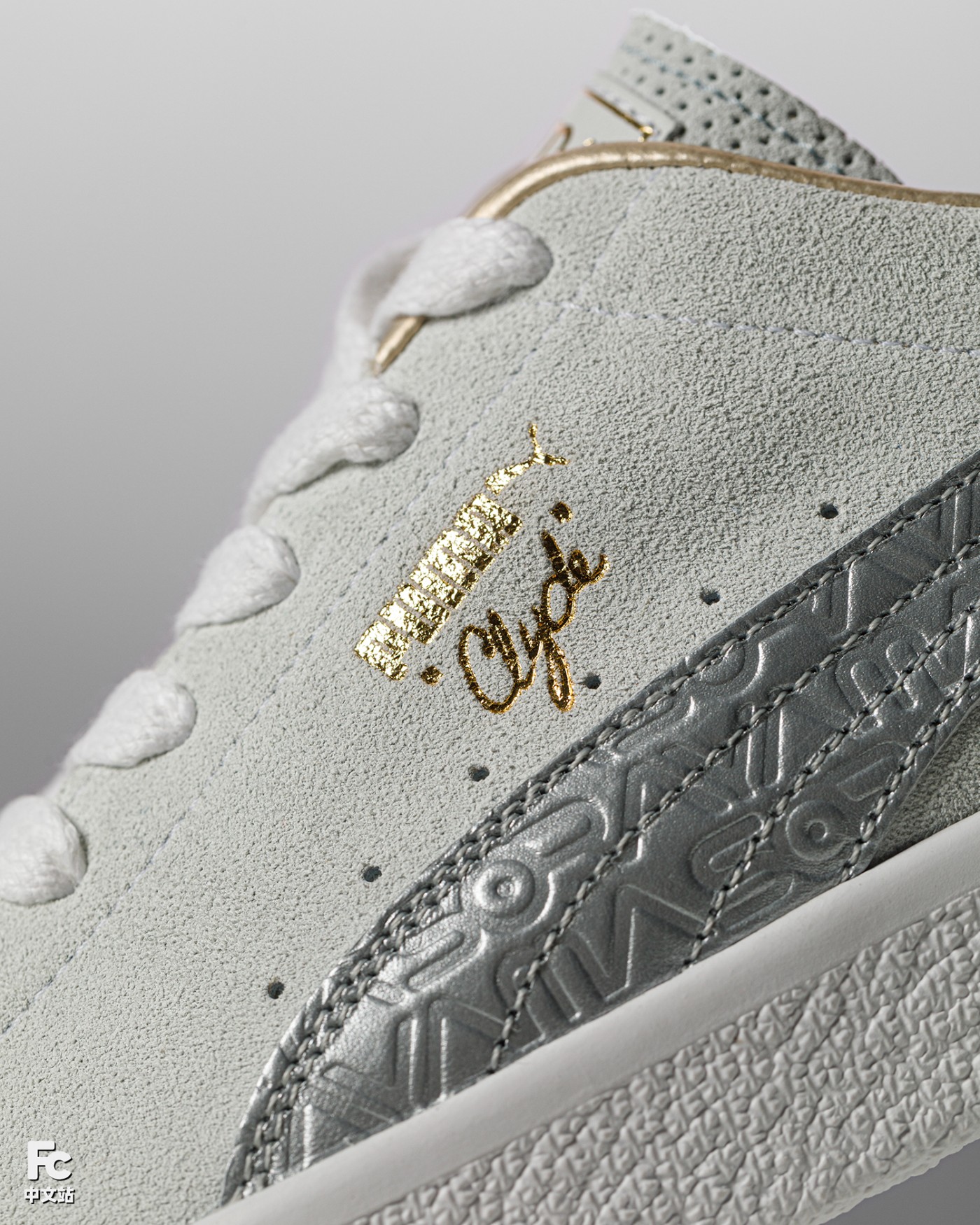 第一款 PUMA Clyde,整体造型以最传统的低帮造型示人,通体灰色的麂皮鞋身,视觉效果低调又不失优秀质感。