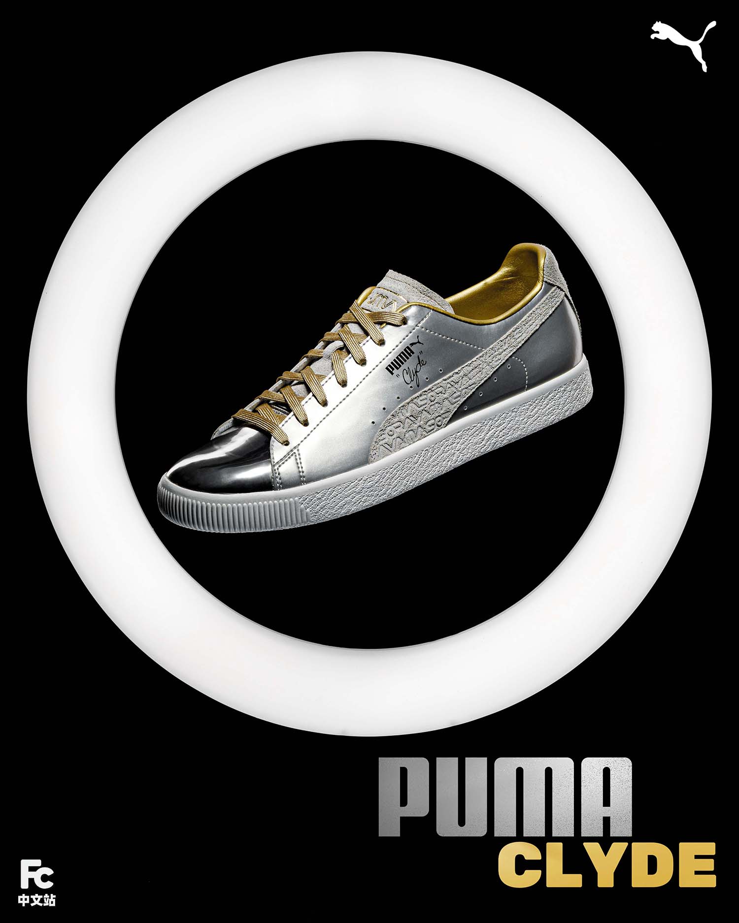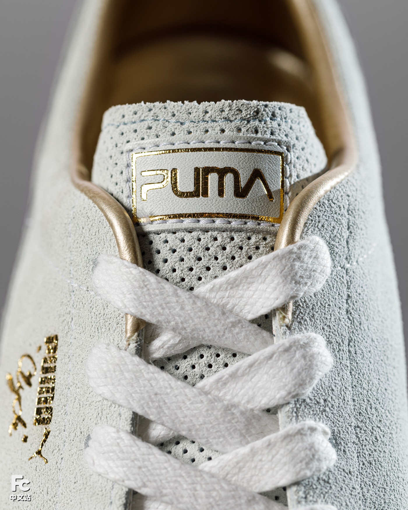 其余细节与与普通版本 PUMA Clyde 完全相同,仅仅将鞋舌 PUMA Logo 换为了更具空山基特色的字体,彰显联名身份。