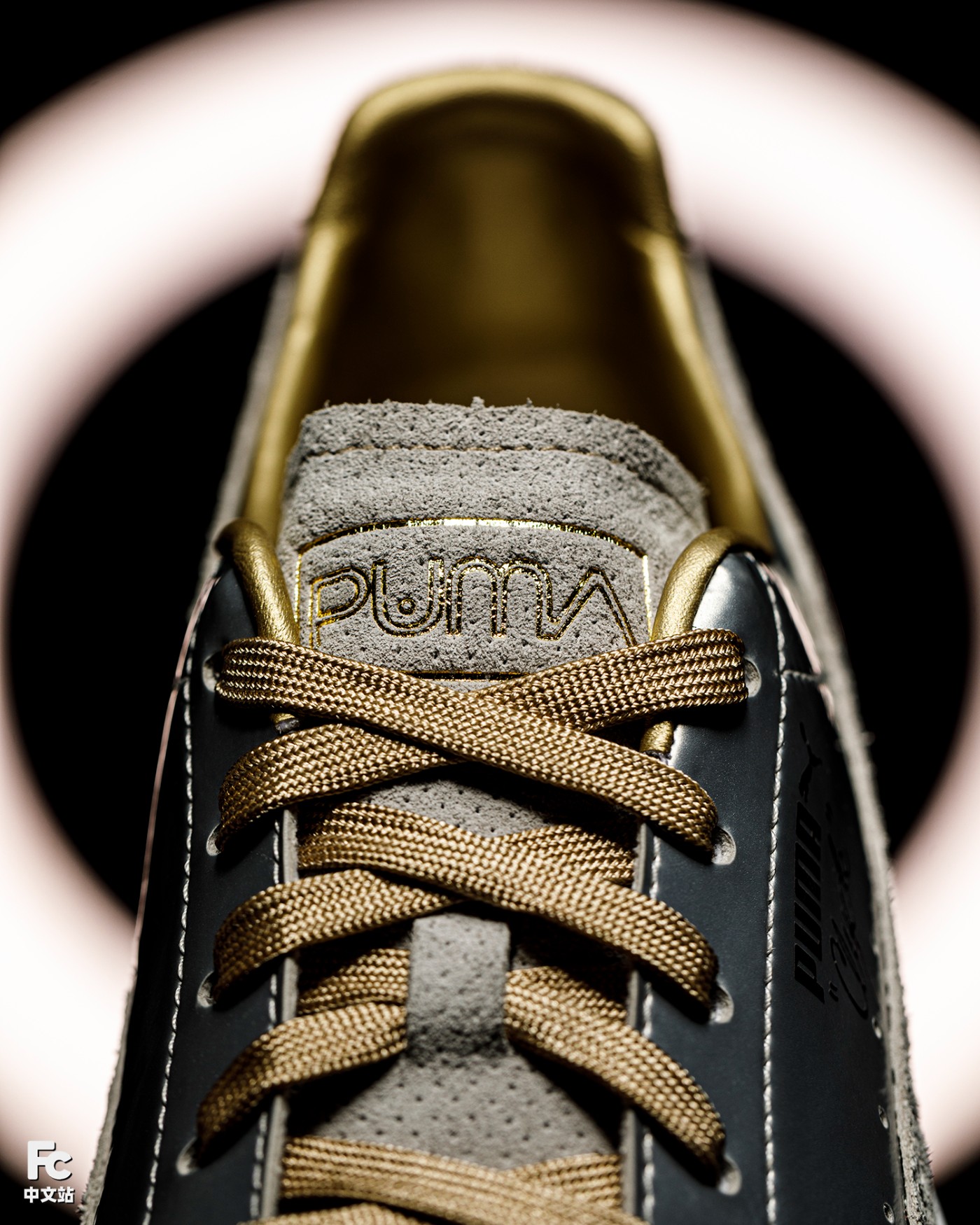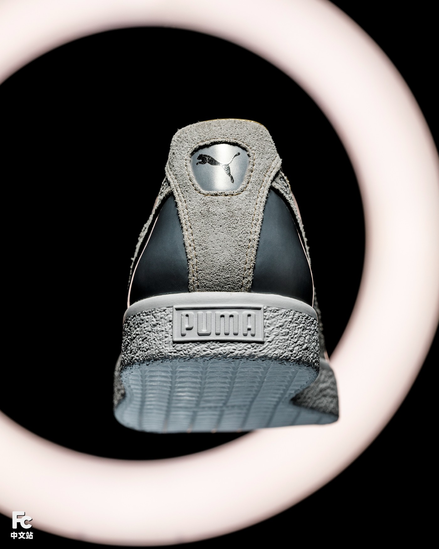 侧身标志性 PUMA 跑道 Logo 采用银色示人,并且以热压手法点缀「Sorayama」字样。