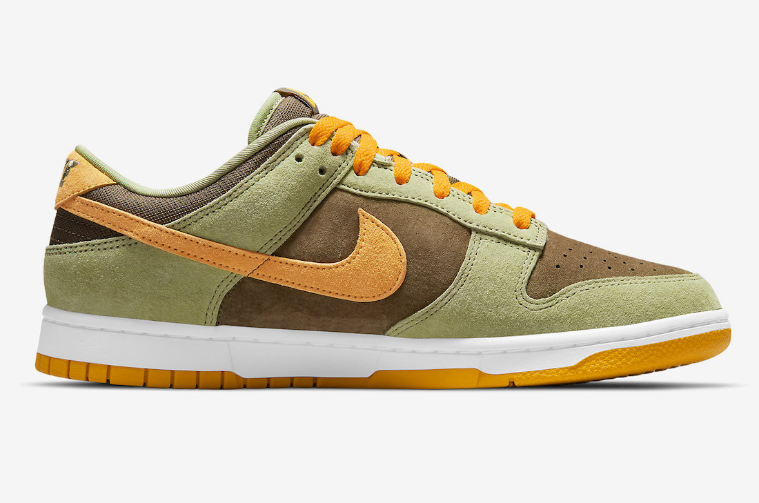 「丑小鸭」相信大家都不陌生,之前的丑小鸭套装「Ugly Duckling Pack」,都深受大家的喜爱。 在 2020 年 Nike 推出了「丑小鸭 2.0」Nike Dunk Low,目前市价在两千元左右,属实是不便宜。 近日,这款配色再度回归,并公布了登场日期。 整体采用深绿色搭配橙色,带来不俗的视觉效果。 鞋面采用麂皮材质打造,质感满满。 最后白色中底搭配橙色外底收尾,完善整双鞋设计。 据悉,全新 Nike Dunk Low “Dusty Olive” 将于 11 月 3 日登场。