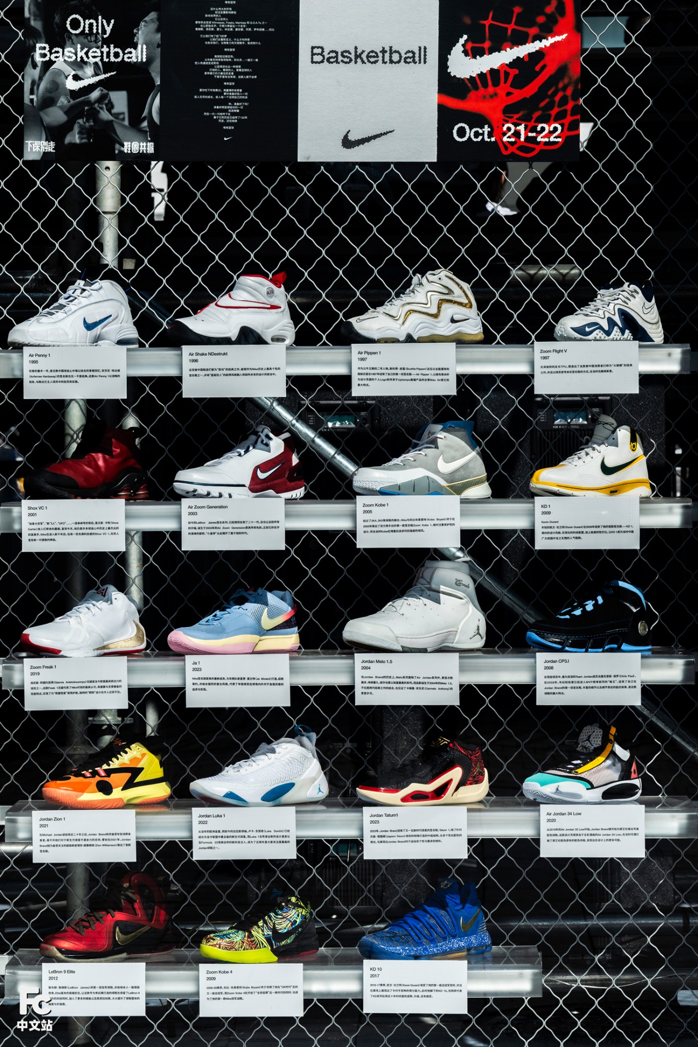 既有 Air Jordan 正代 1 - 38 的完整展示,也有 Nike 旗下众多代言球星的签名战靴,还有几十年来 Nike 球鞋科技的演变,以及为中国篮球人所打造的专属装备。