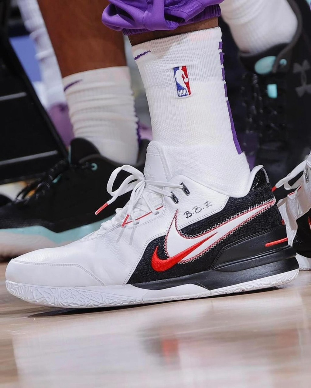 终于,湖人官方以及诸多媒体都释出了这双战靴的特写图片,让我们得以近距离观赏这双充满纪念意义的球鞋。