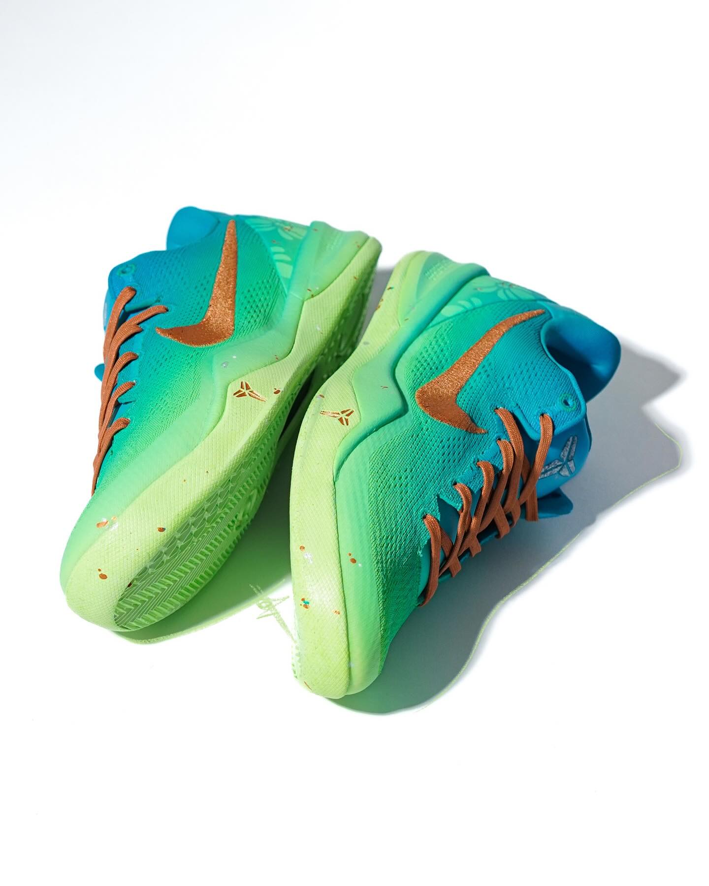 随着球鞋的不断发展,定制鞋在这两年热度持续升温,推出过不少高颜值的配色鞋款。 近日,海外的定制师推出全新 Nike Kobe 8 Protro。 整双鞋配色以著名的科莫湖为灵感,由蓝到绿渐变覆面,金色 Swoosh 点缀,小编一眼就相中了。 同时鞋后跟处的金色科比签名,还印有花朵图案,十分吸睛。 鞋底处带有金色点缀,奢侈感十足。 同时还配色同配色的篮球。 更多精彩的球鞋定制作品,我们将持续关注并随时带来更新。 Pic via:1off.unique