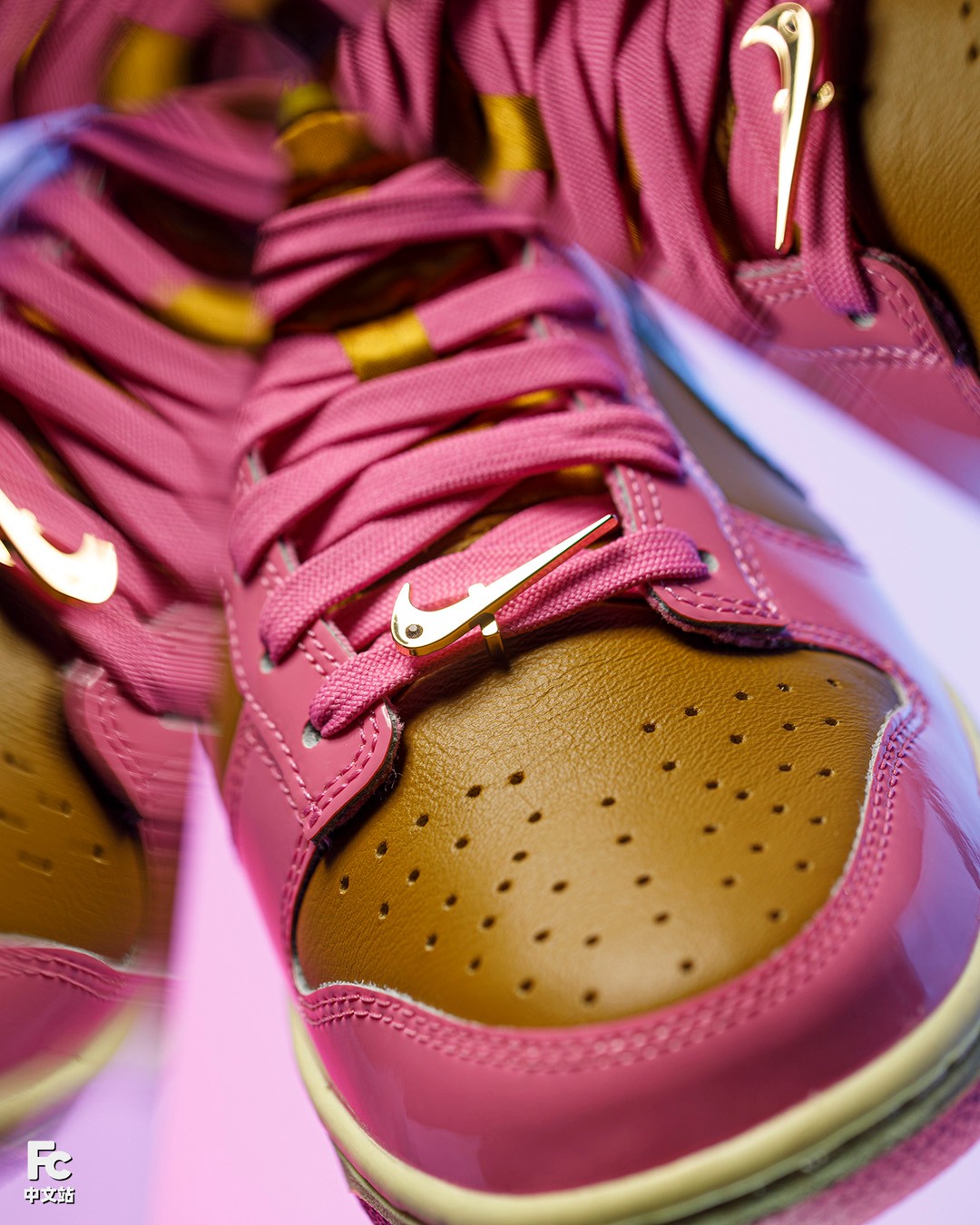 作为一双专属配色,鞋身细节处处都展现出它的独特,比如鞋舌织唛的反向 Logo,顺应了穿着者的第一视角,传达出鼓励女生们取悦自己的含义。
