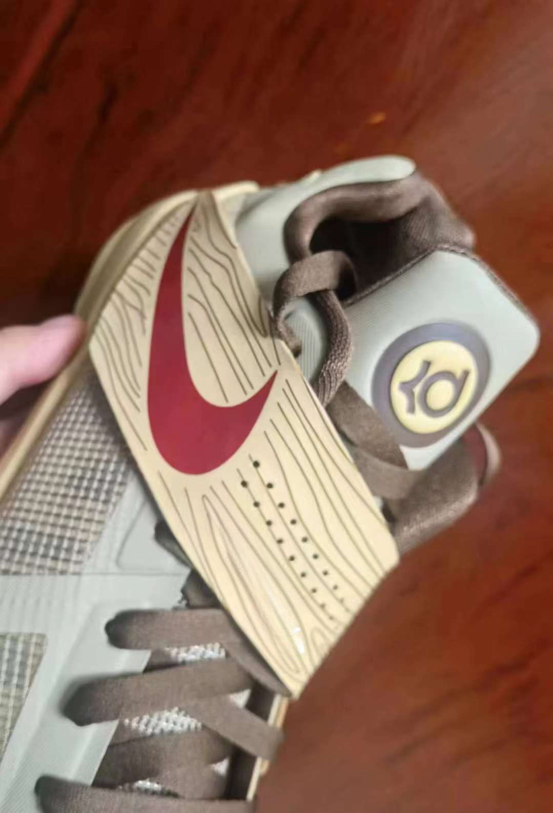 鞋面绑带上缀有木质纹理,点缀红色 Swoosh LOGO。