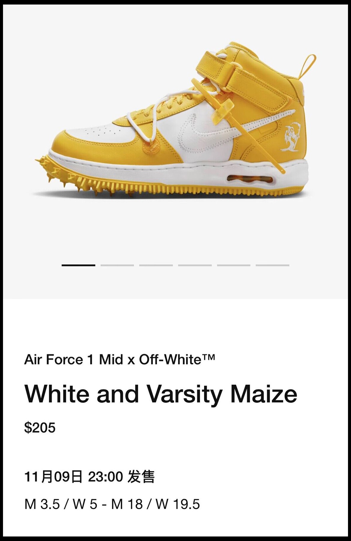 近日,双方再度携手推出白黄配色的 Off-White™ x Nike Air Force 1 Mid,并上架美区。
