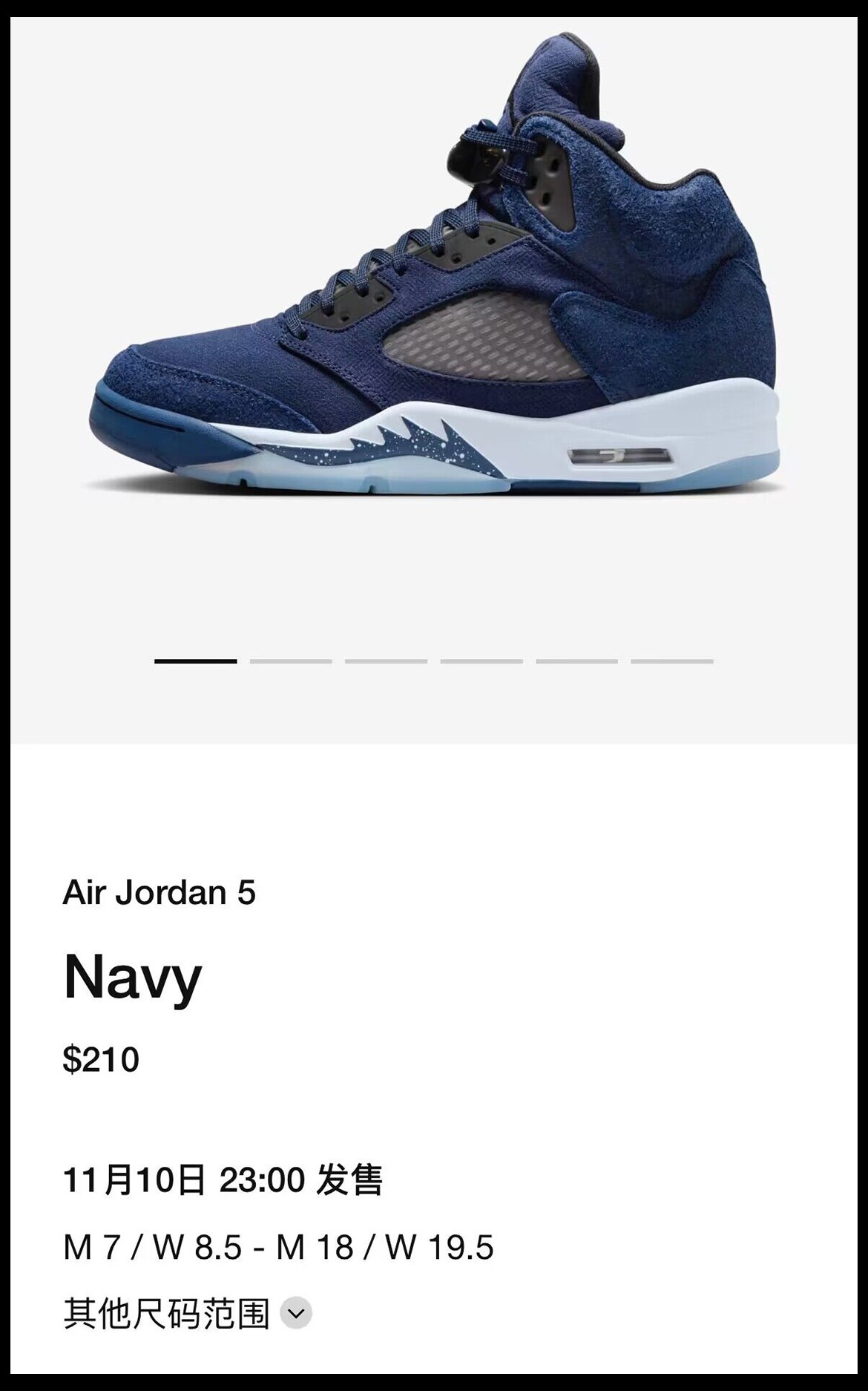 近期,一款海军蓝配色的 Air Jordan 5 正式上架美区。