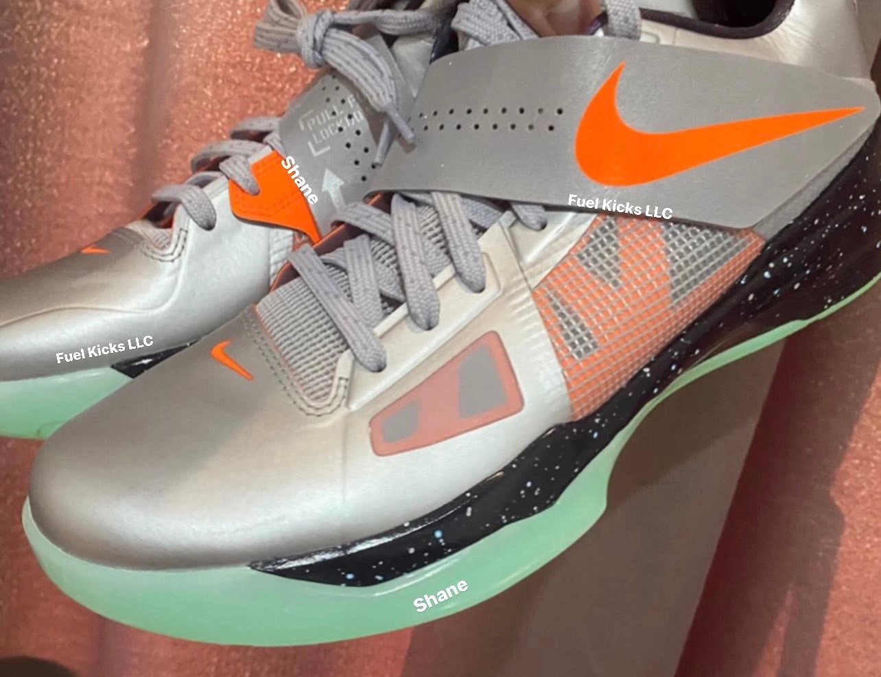 随后同期一并登场的银河 Nike KD4 “Galaxy” 也将在明年全明星周末期间回归,近期终于首次曝光复刻实物,并释出登场日期。