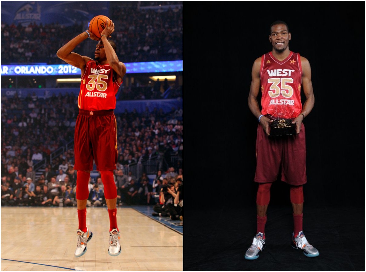 加之当年杜兰特正是穿着这双战靴,荣膺全明星 MVP,更多了一层纪念意义。