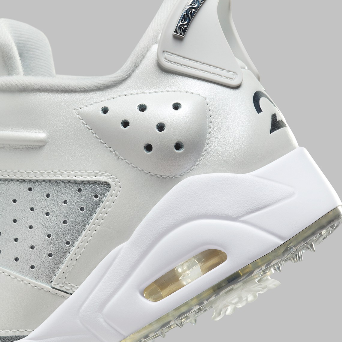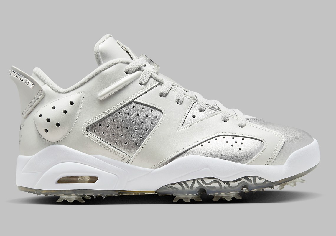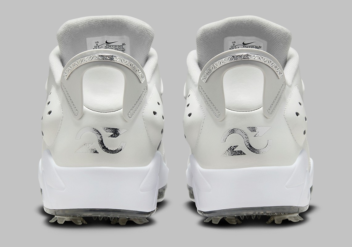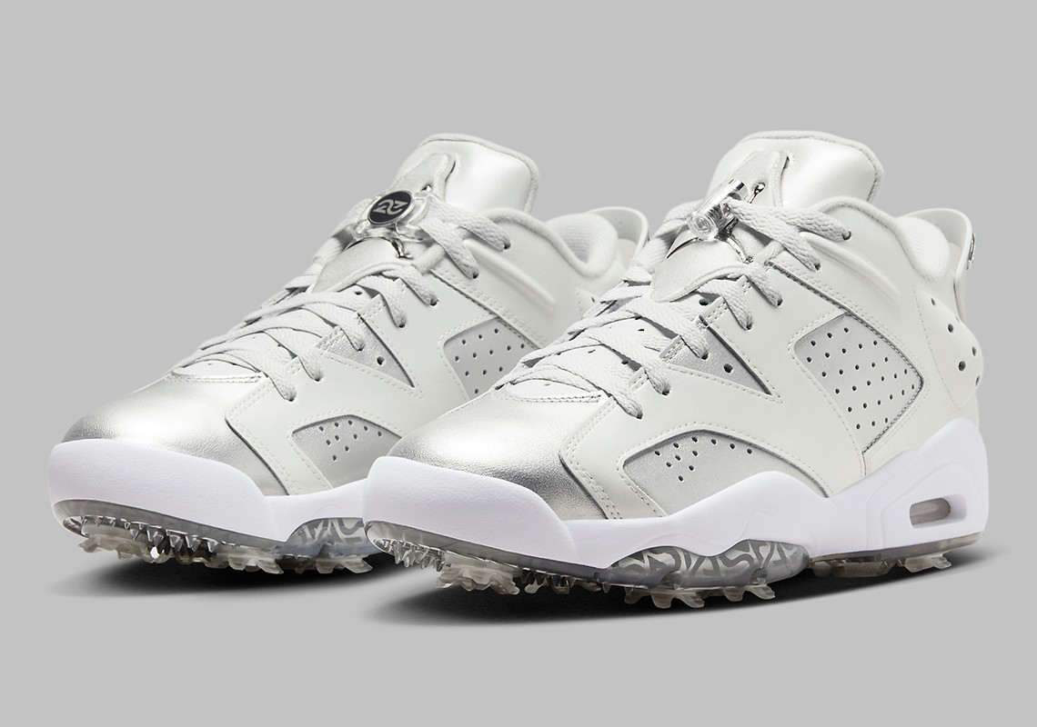 第二双以 Air Jordan 6 Golf 为蓝本,采用同样配色方案,外底带有高尔夫专用的抓地系统以及鞋钉。