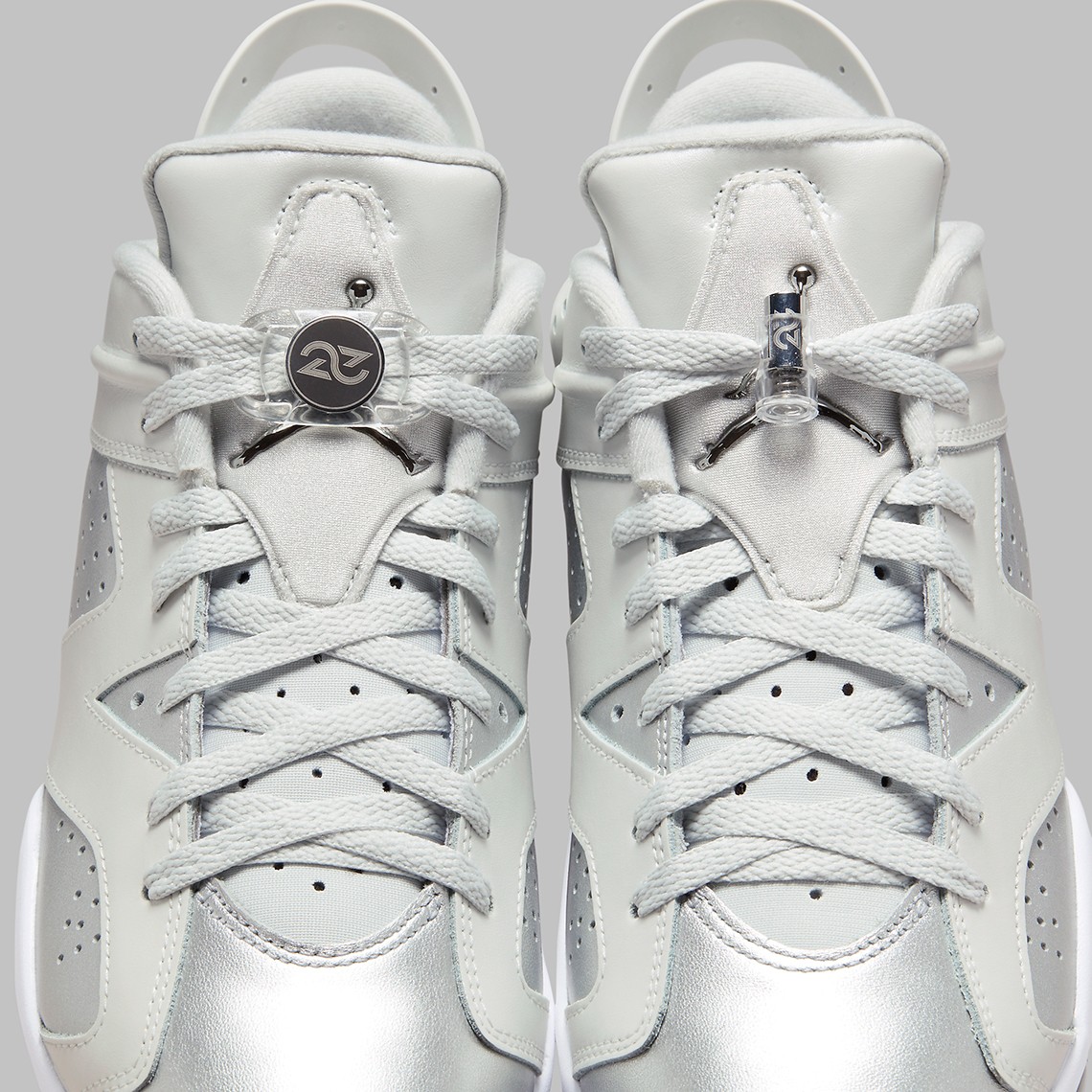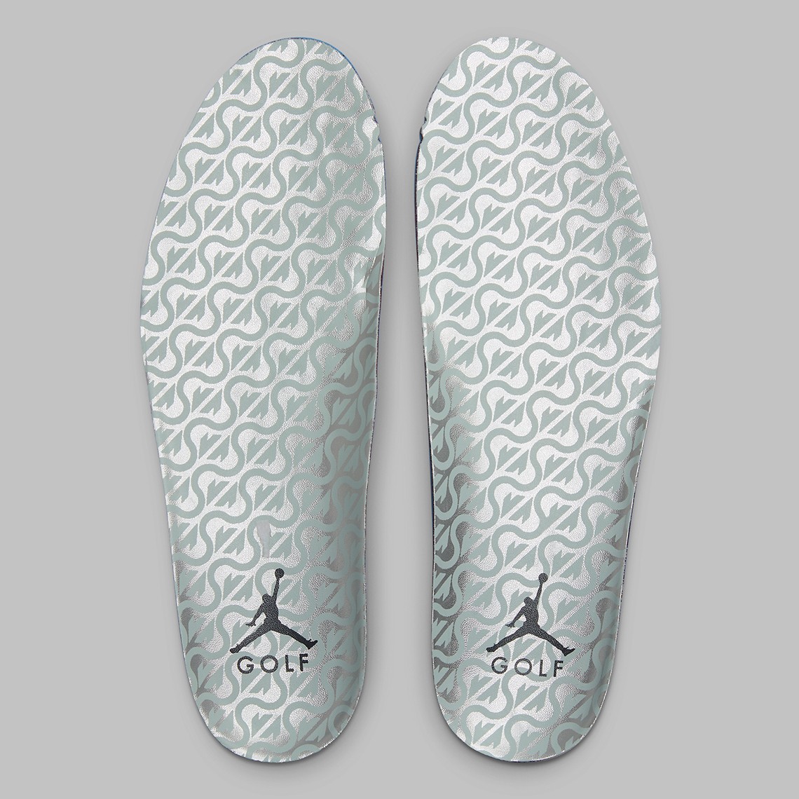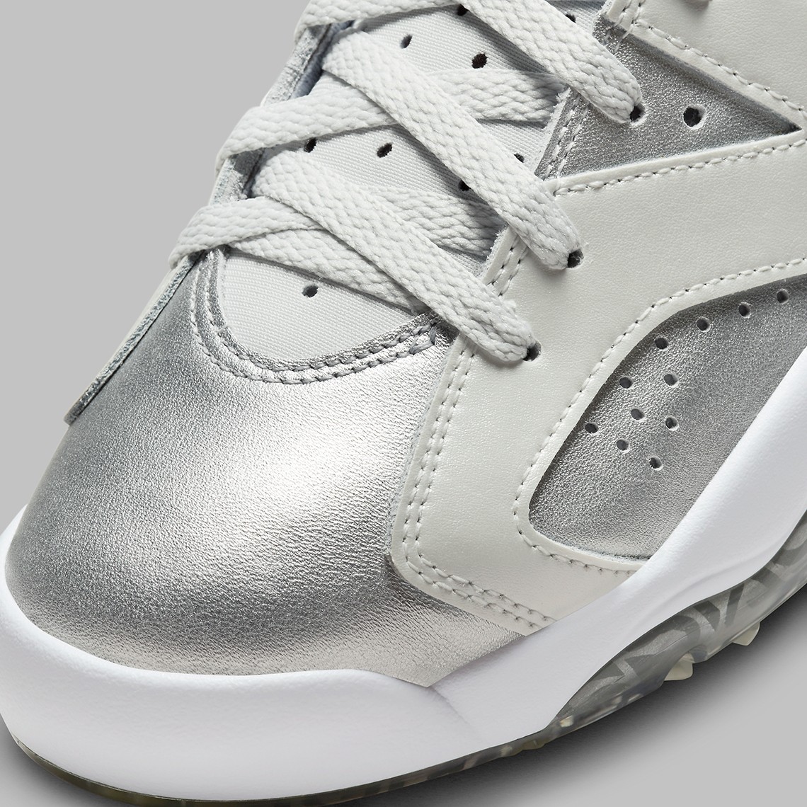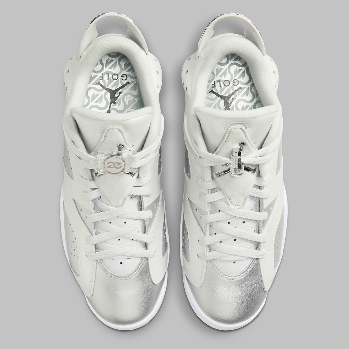 第二双以 Air Jordan 6 Golf 为蓝本,采用同样配色方案,外底带有高尔夫专用的抓地系统以及鞋钉。