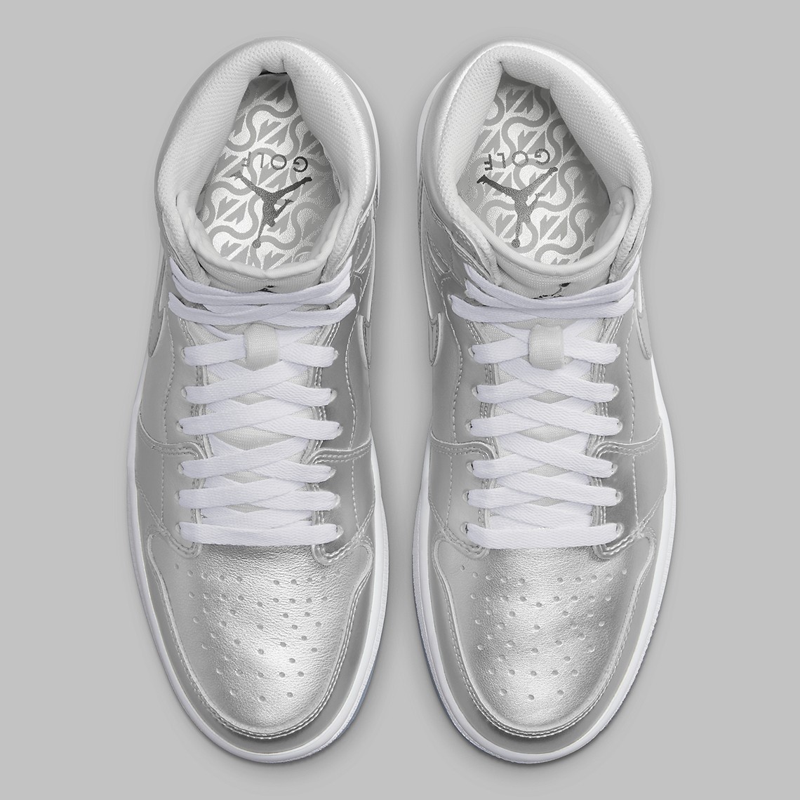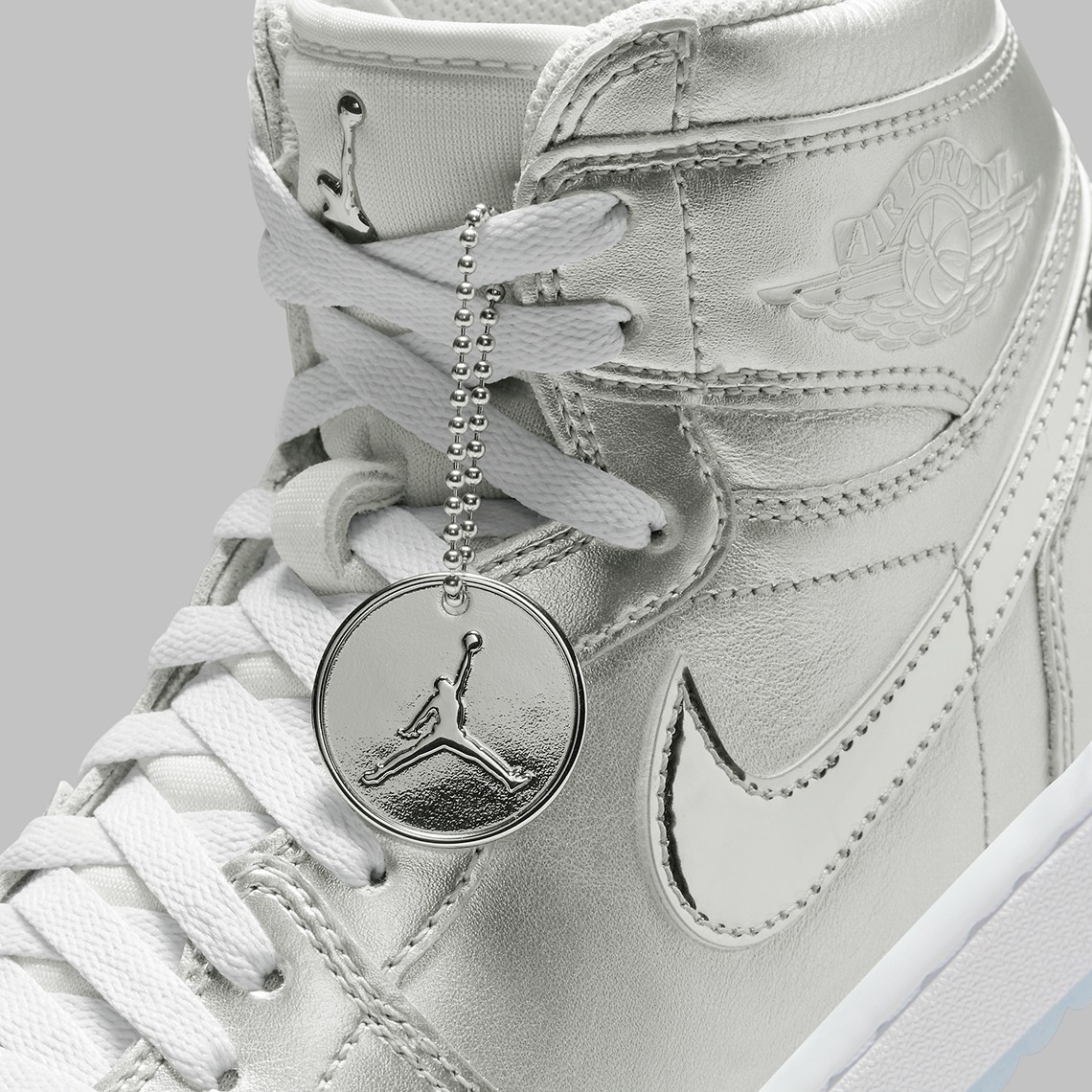 第一双为 Air Jordan 1 Golf 鞋型,整体银色覆面,十分酷似东京配色。