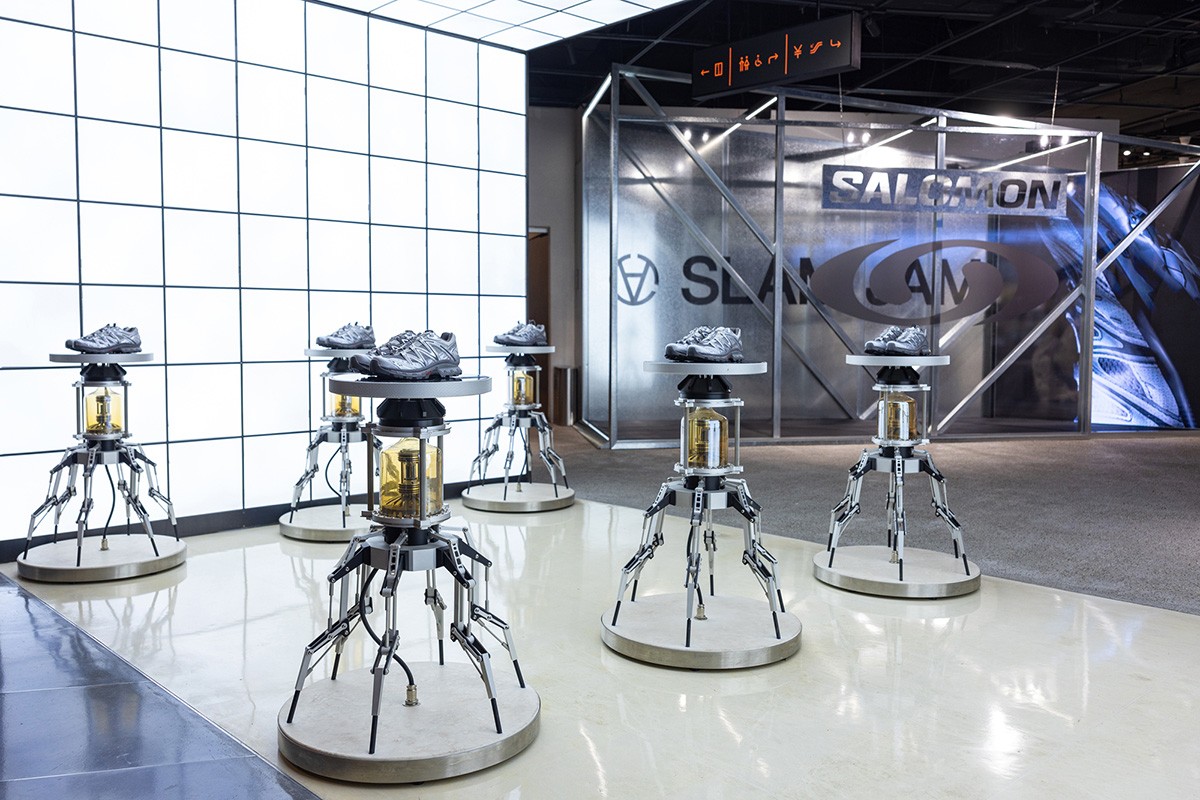 今年 11 月,法国户外品牌 Salomon 再次与意大利时尚名所 SLAM JAM 合作,推出了全新的 XT-QUEST FOR SLAM JAM 联名鞋款。为了配合这一联名鞋款的发布,双方在北京 SKP-S 打造了一个沉浸式零售体验空间,并于 11 月初正式向公众开放。这也是 SLAM JAM 团队首次来到中国,并在现场展示了这次合作的主题和背景故事。