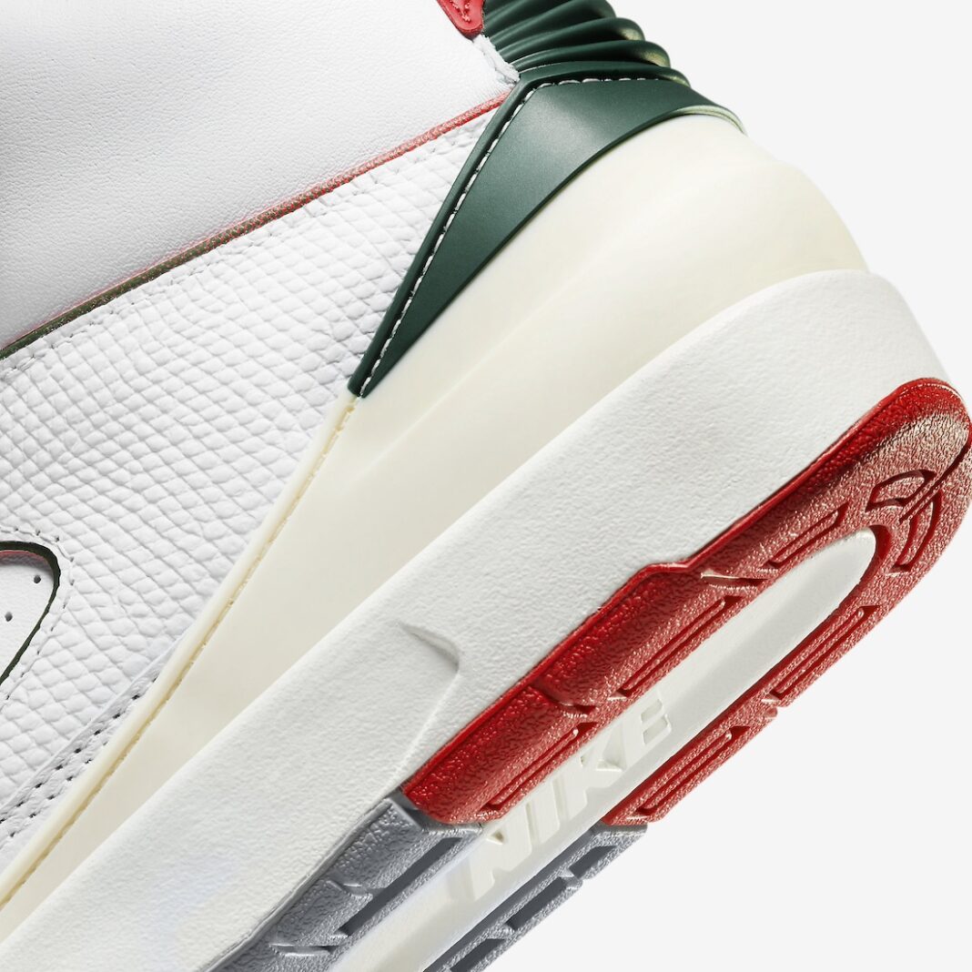 最初在意大利生产制作的 Air Jordan 2 一直是 Jordan Brand 众多鞋款中高级、奢华的代表。 为了向原产地意大利致敬,最近一款意大利国旗配色的 Air Jordan 2 将迎来发售。 大面积白色鞋身,搭配红、绿双色装扮,构色方案与意大利国旗保持一致,同样给人以圣诞节氛围。 细腻的皮革材质凸显质感,蜥蜴皮纹理又增加了奢华感。 据悉 Air Jordan 2 “Origins” 将于 11 月 15 日登场,定价为 $175 美元。