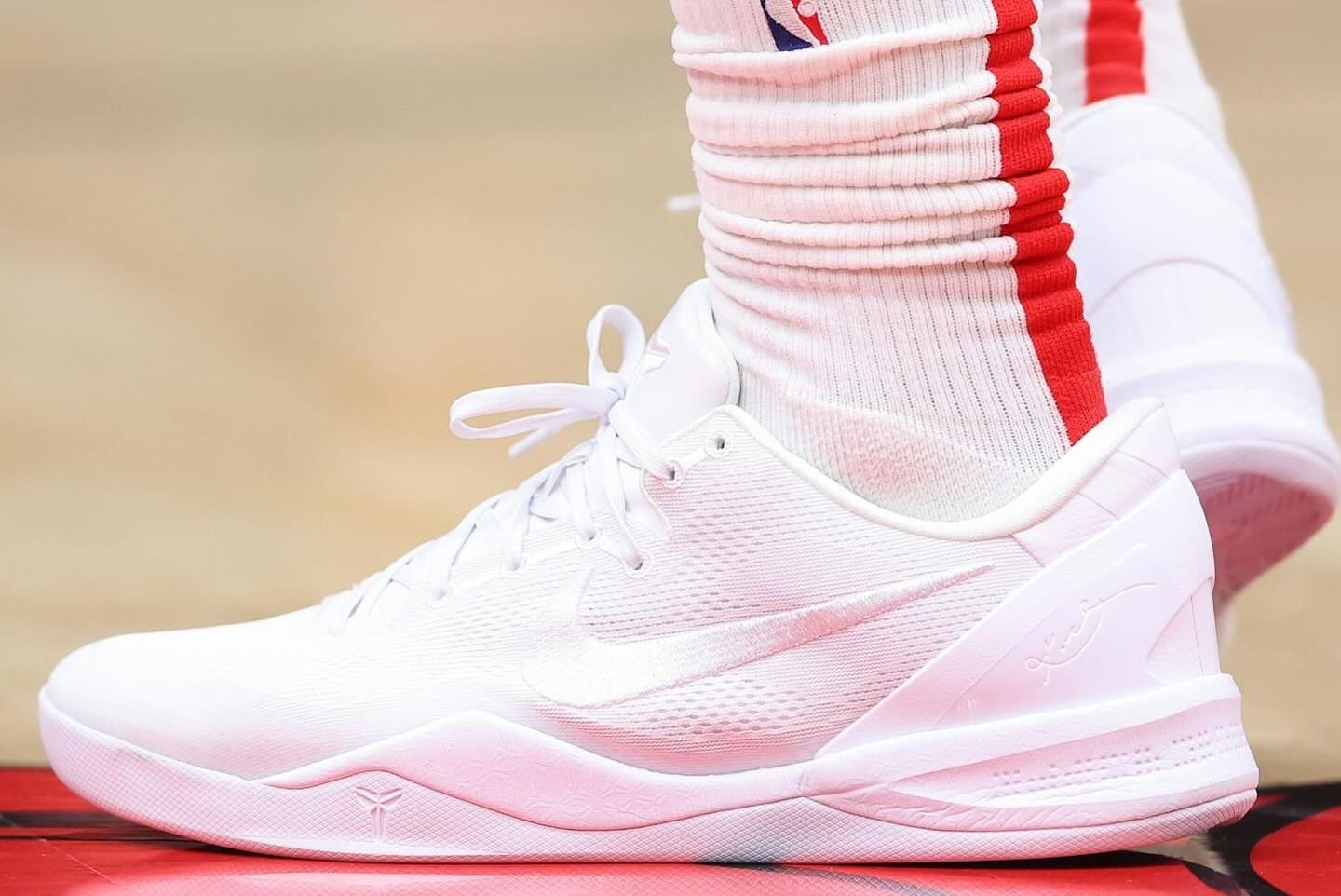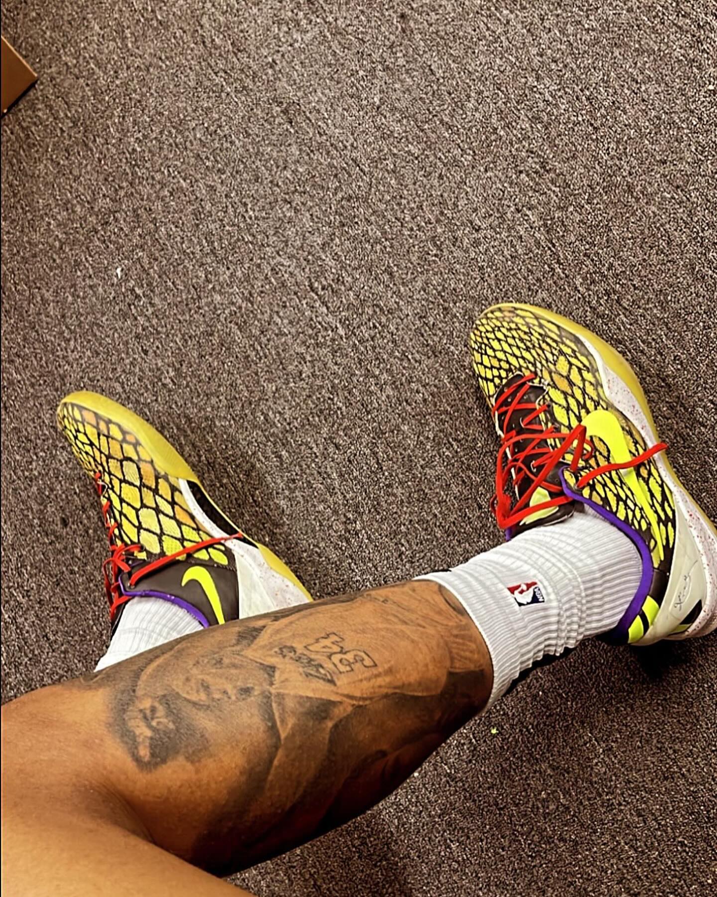 除此之外,还上脚了 Nike Kobe 8 Protro PE,各位觉得这颜值能打几分呢?