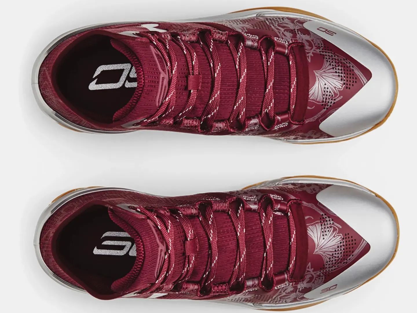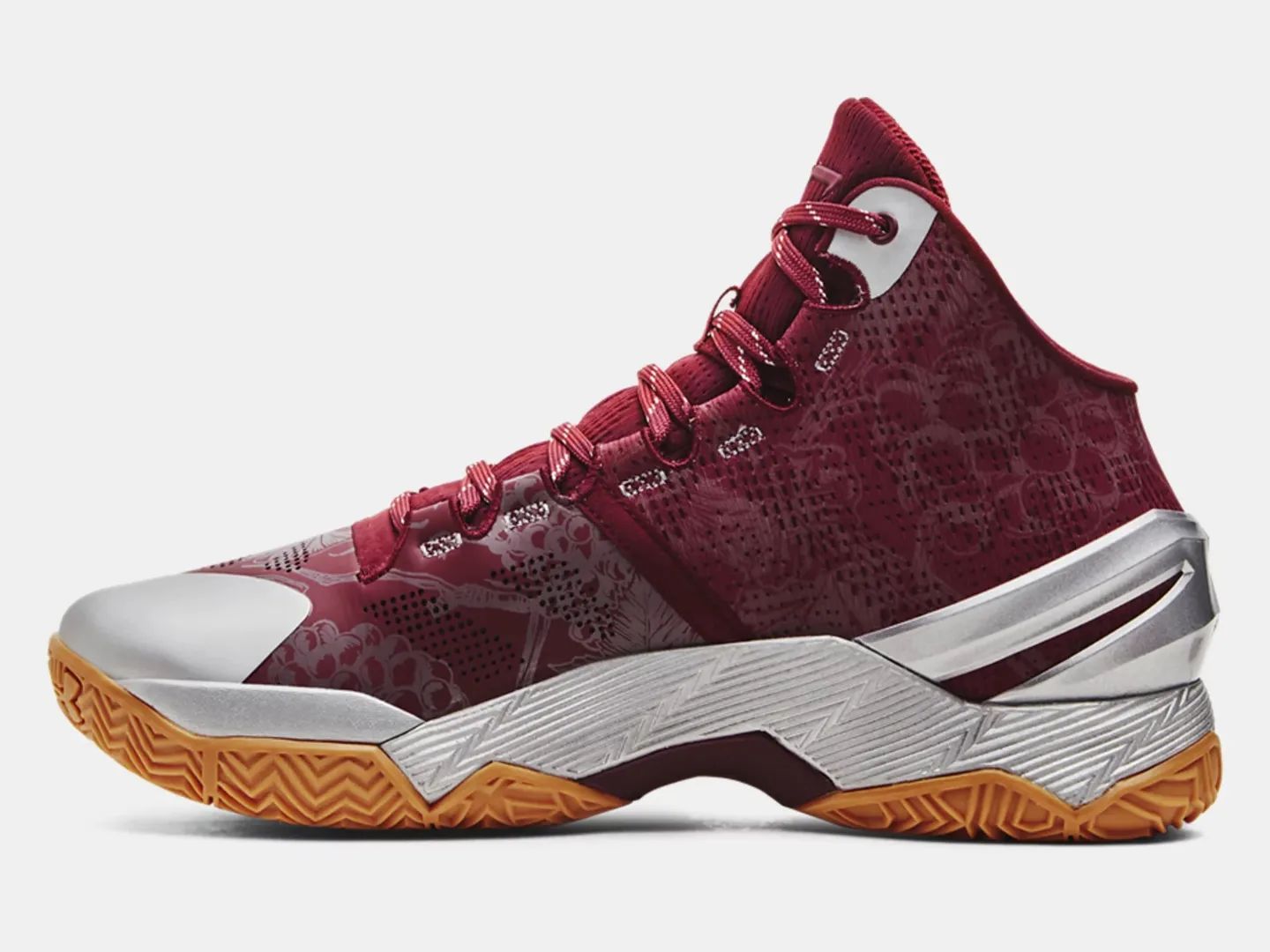 因此整双鞋在配色方面采用酒红色作为鞋身主调,辅以银色点缀。