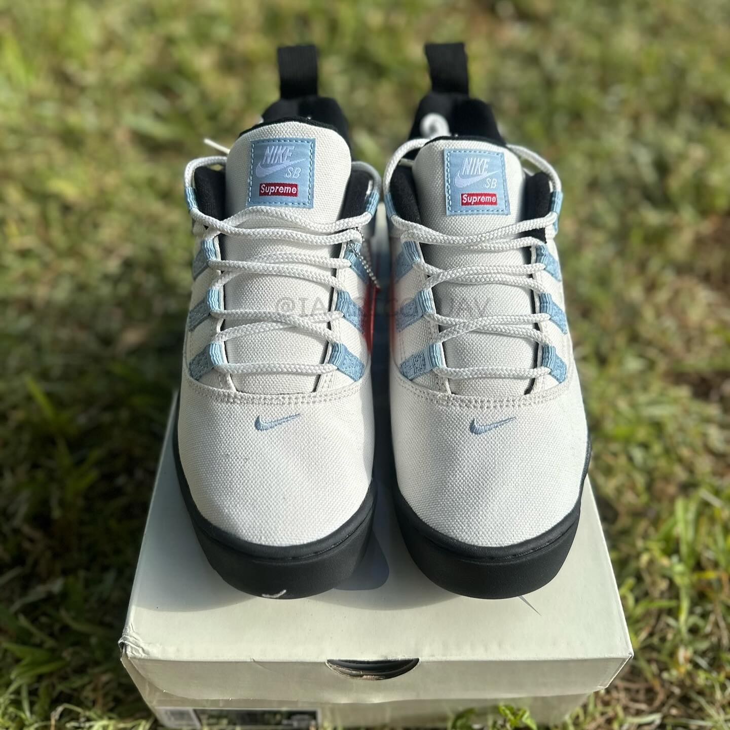 细节方面,除了传统的 Supreme、Nike Logo 外,后跟的皮质「倒钩」也非常讨喜,为鞋款再添几分吸睛属性。