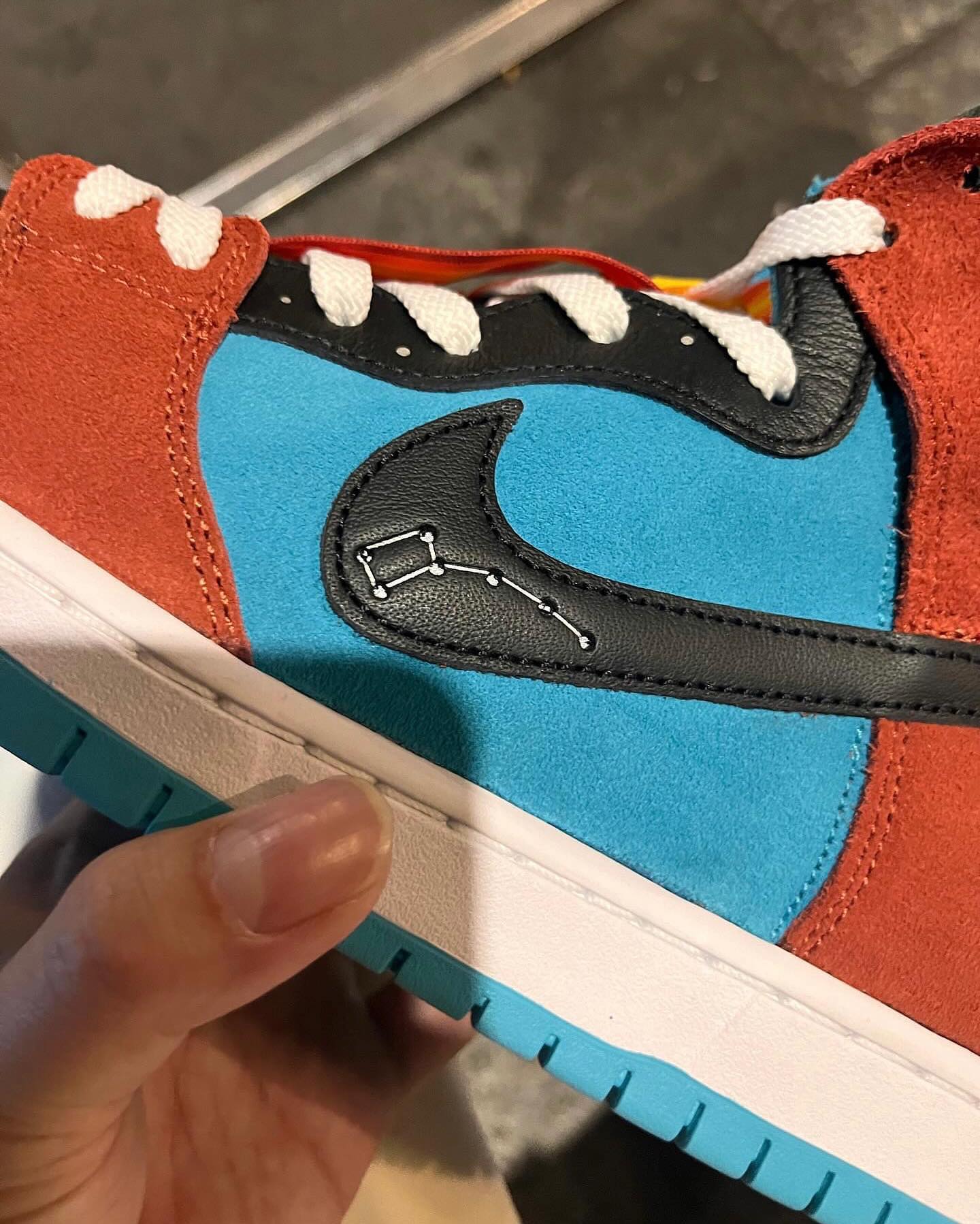 鞋头处的网眼采用北极星造型设计,同时在 Swoosh 上绣有星座图案。