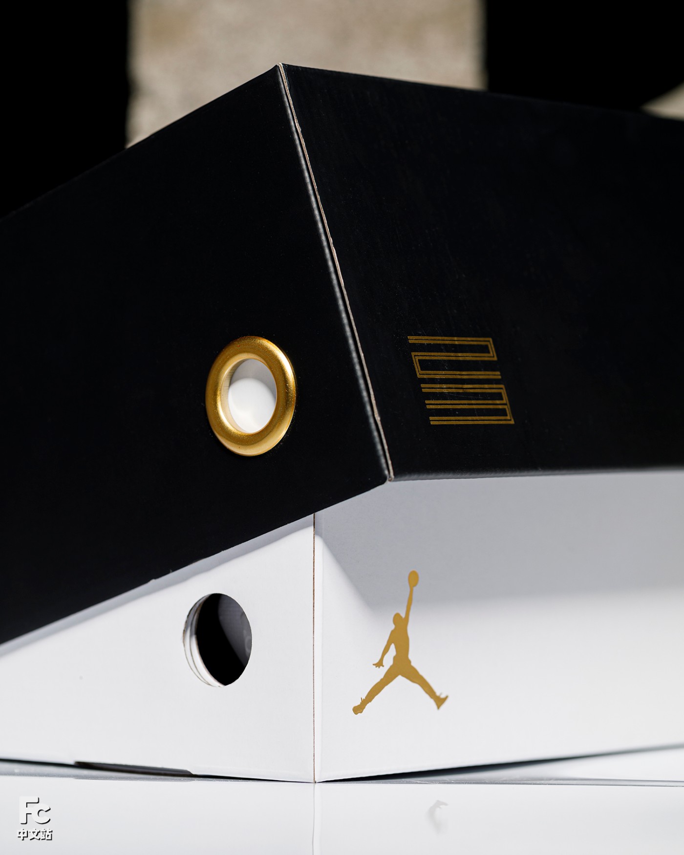 黑、白双色掀盖设定,正好分别呈现烫金 23 字样和 Jumpman 跳跳人 Logo。