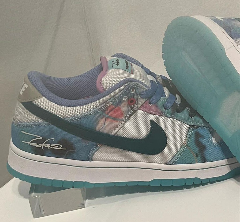 Virgil 生前曾亲自曝光过 OFF-WHITE x Futura x Nike Dunk Low,然而最终未能市售,成为永远的遗憾。
