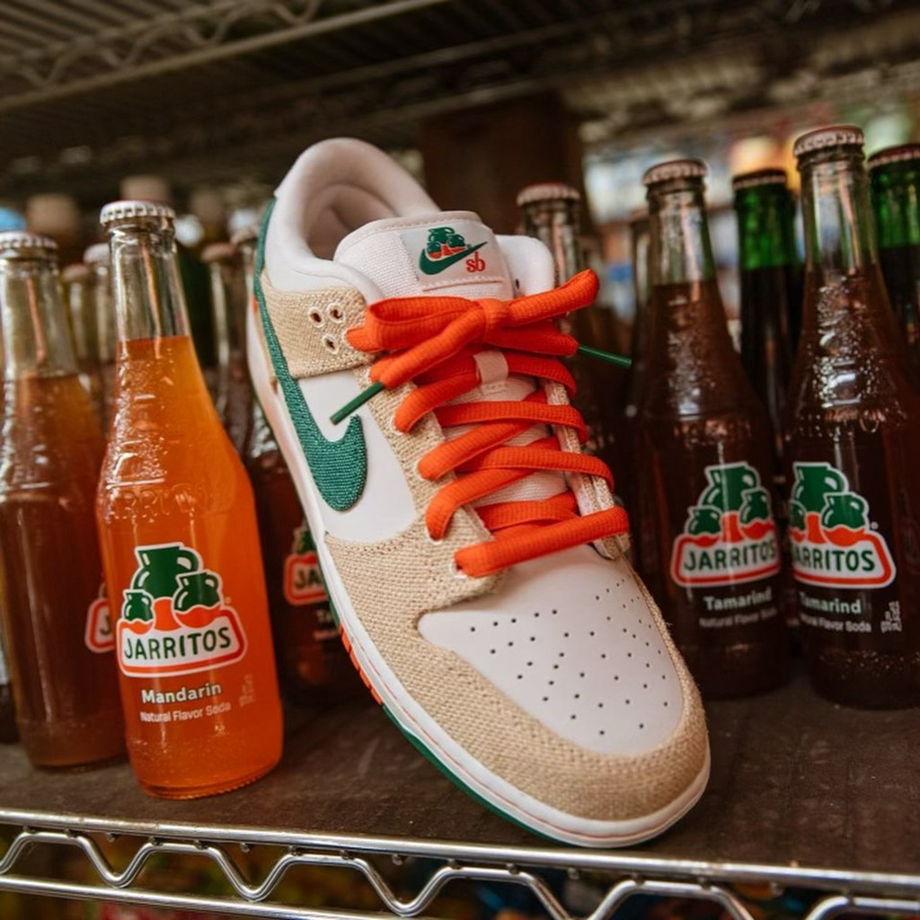 这双 Jarritos x Nike SB Dunk Low 可以说是今年联名 Dunk 爆火的 “万恶之源”,是今年第一双令人意想不到的 “黑马起飞款”。