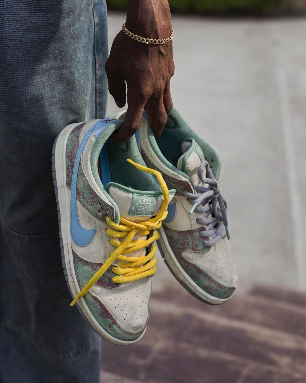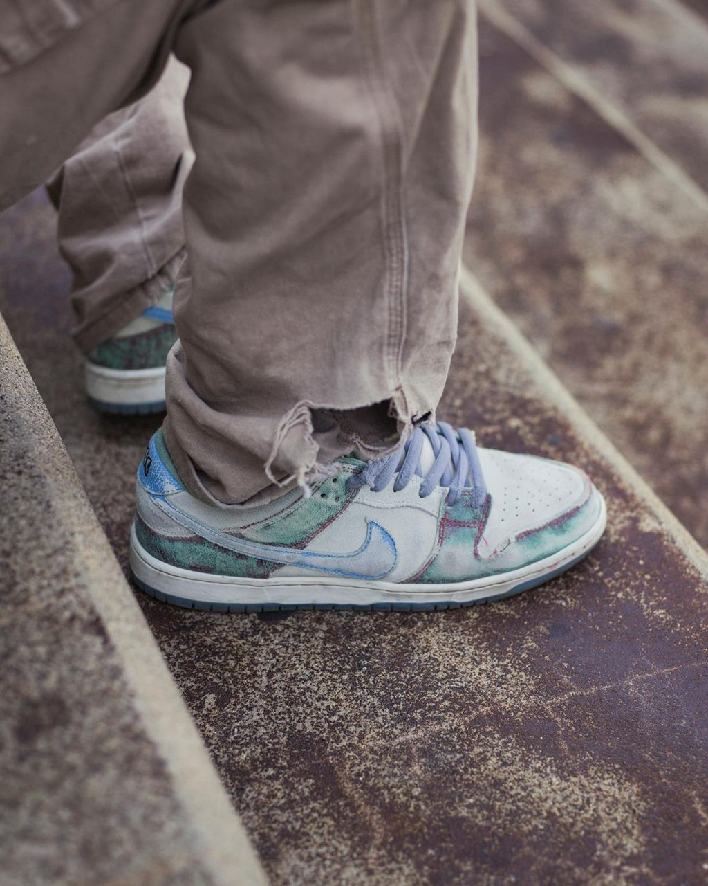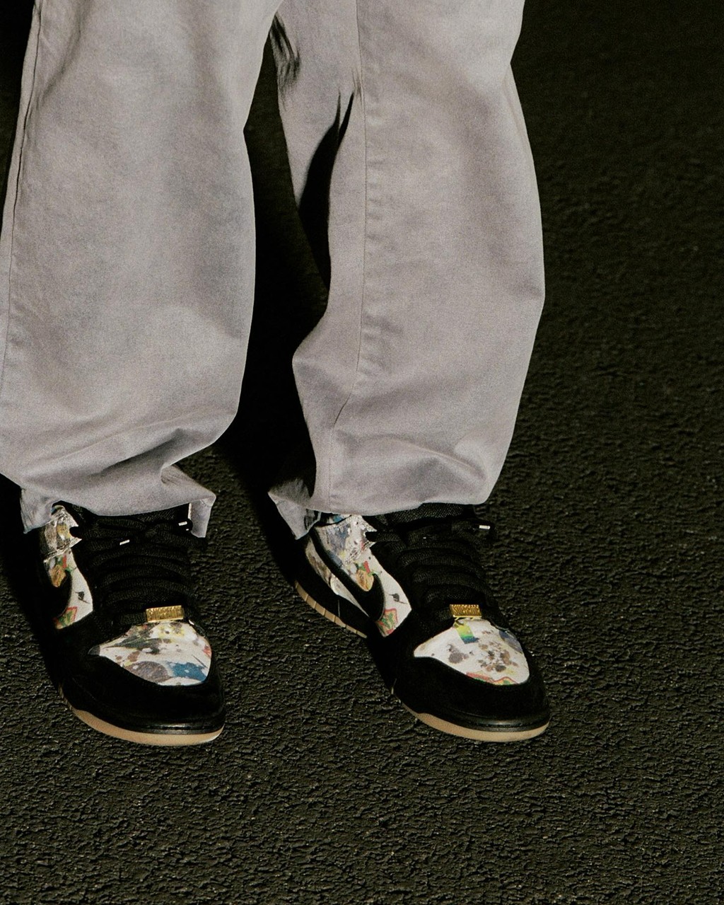 伴随着主理人不幸离世,这双 Born x Raised x Nike SB Dunk Low 突然就被推到了鞋圈热度最高峰。