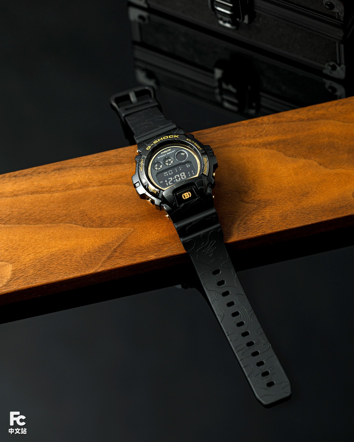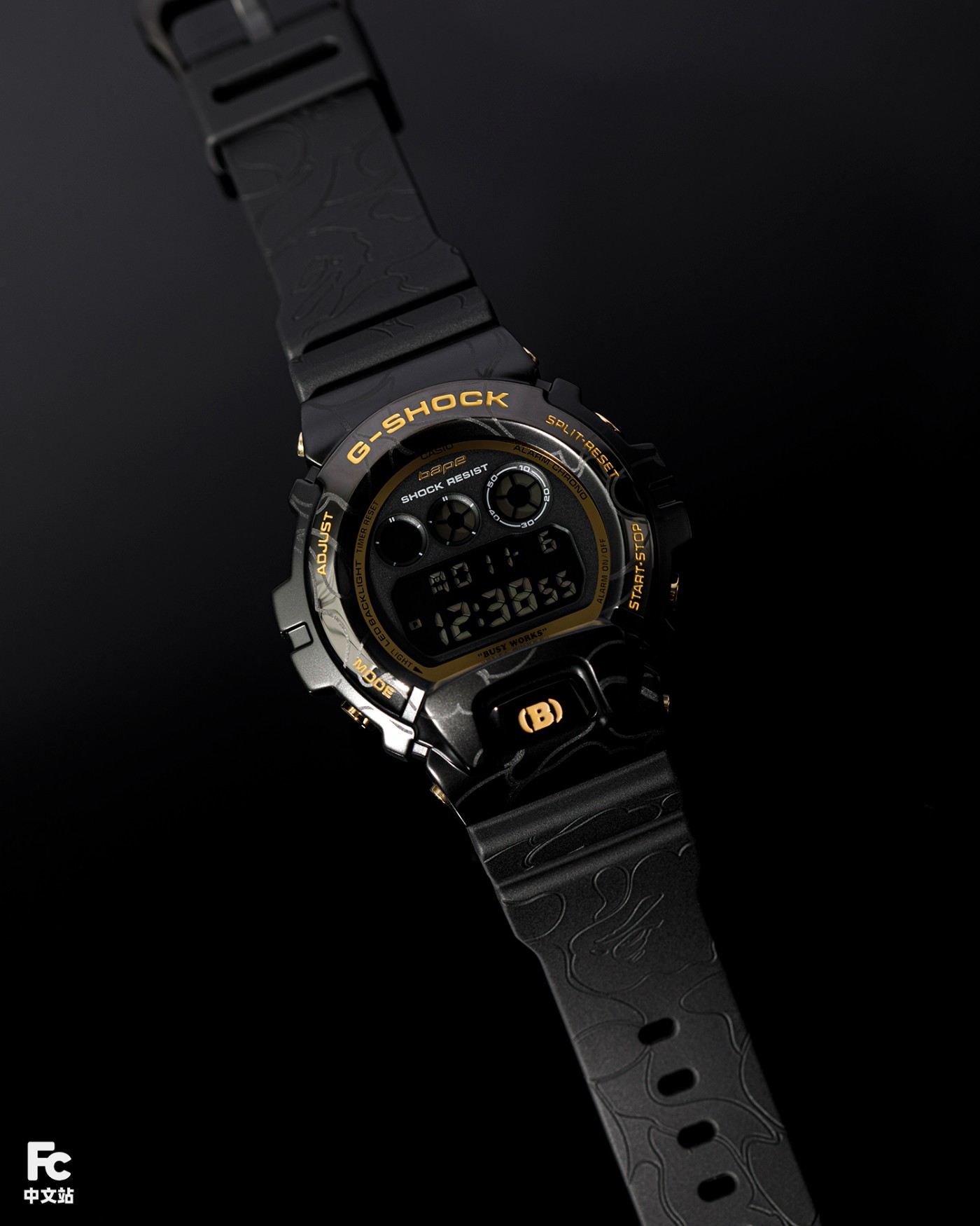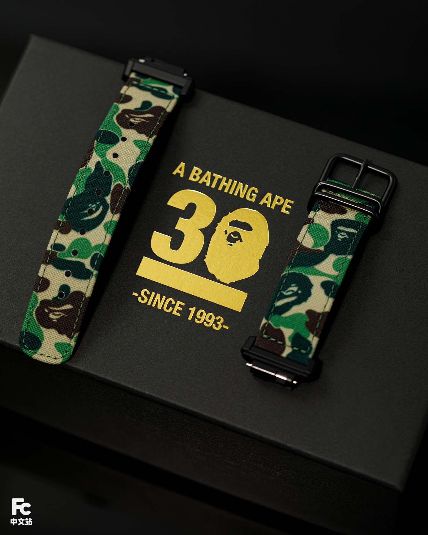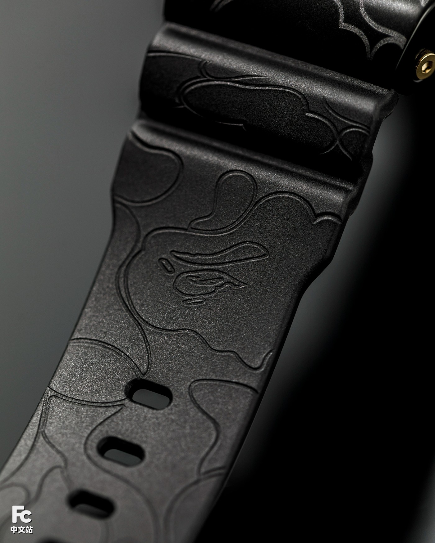 橡胶表带布满 BAPE® 迷彩花纹,再次强调潮流属性。