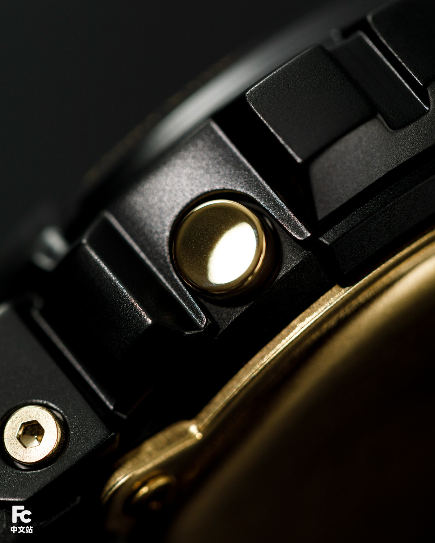 黑色橡胶表冠、金属按钮,组合出奢华的黑金装扮。