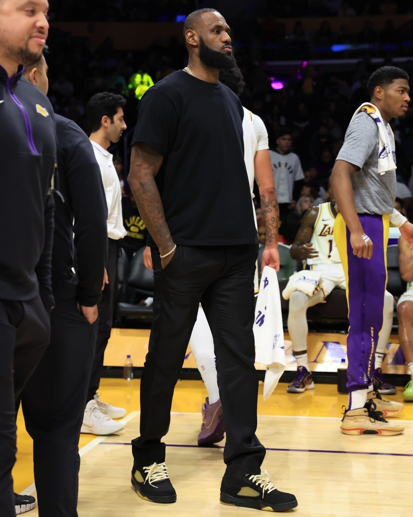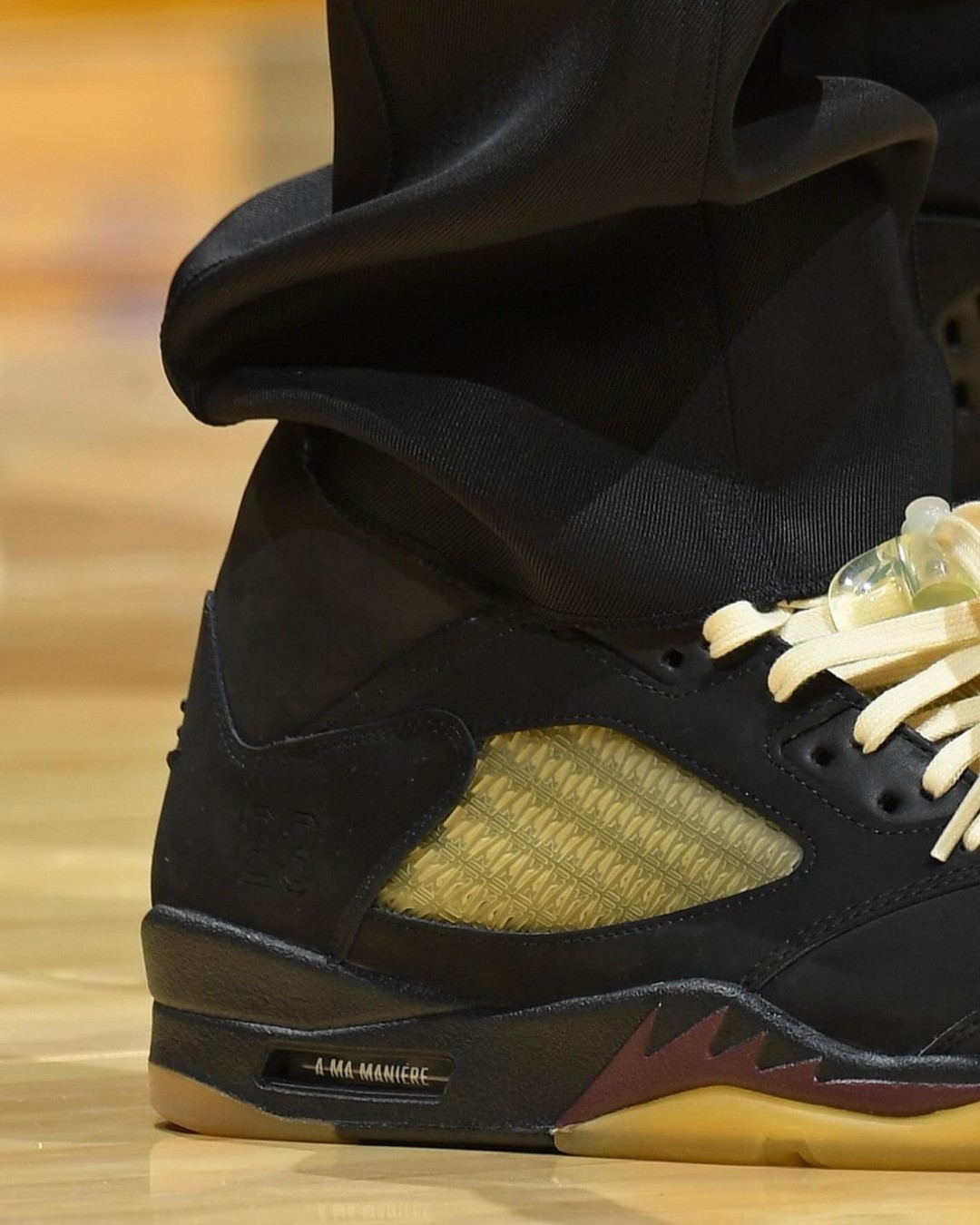 在昨天,湖人与开拓者的比赛前,詹姆斯上脚全新黑色款 A Ma Maniére x Air Jordan 5,十分吸睛。