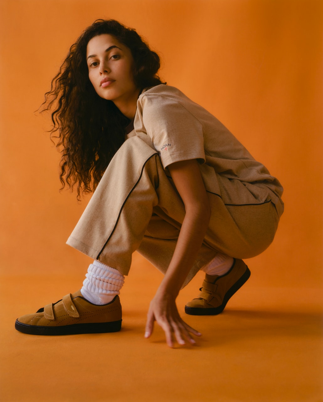 并在后跟处印有 NOAH 经典的十字 Logo,彰显联名鞋款身份。