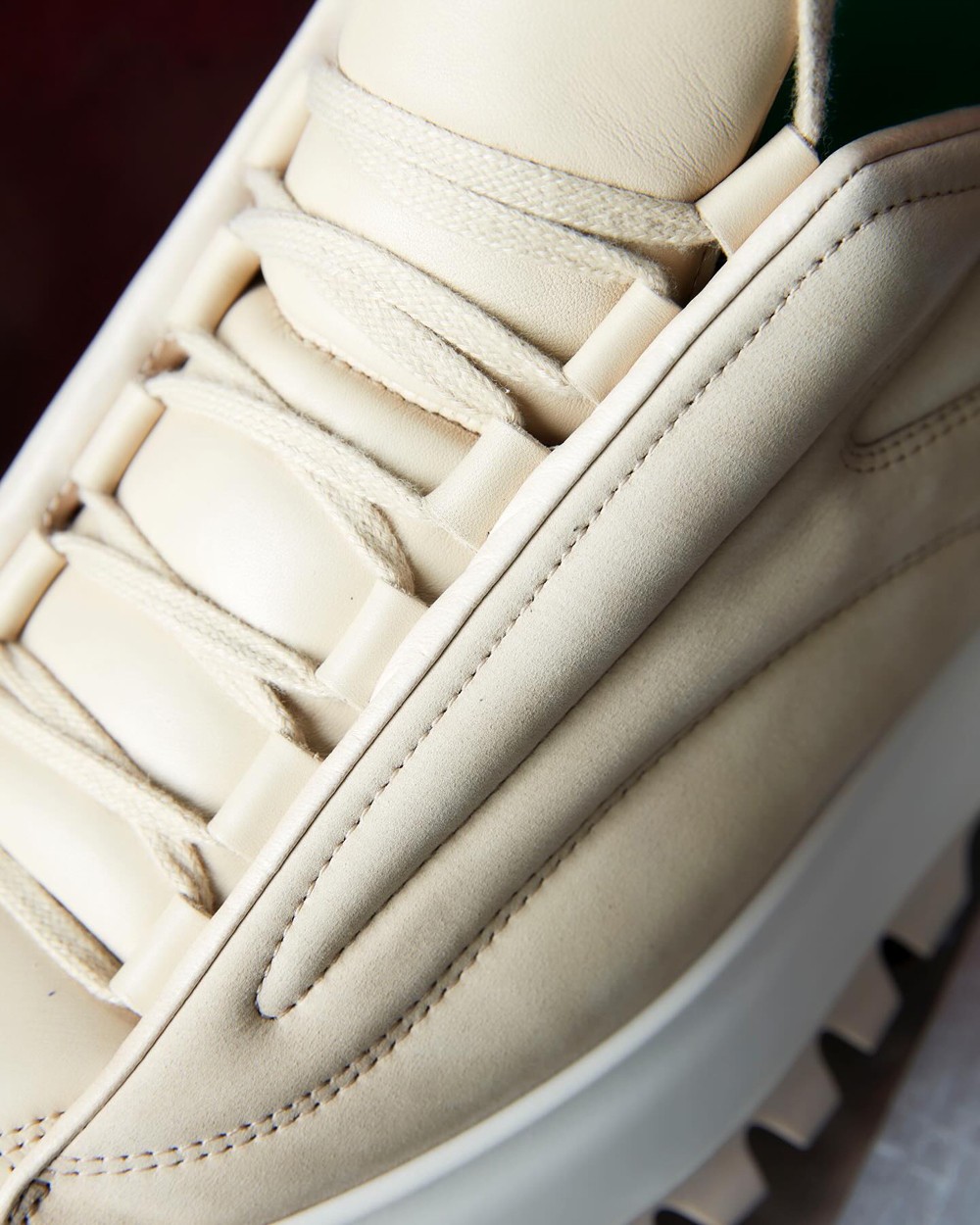 面包状的圆润廓形与略带酷感的锯齿状鞋底设计形成极大的视觉反差。