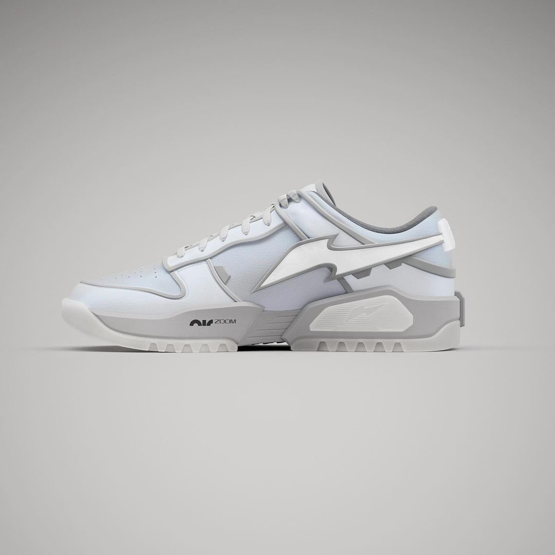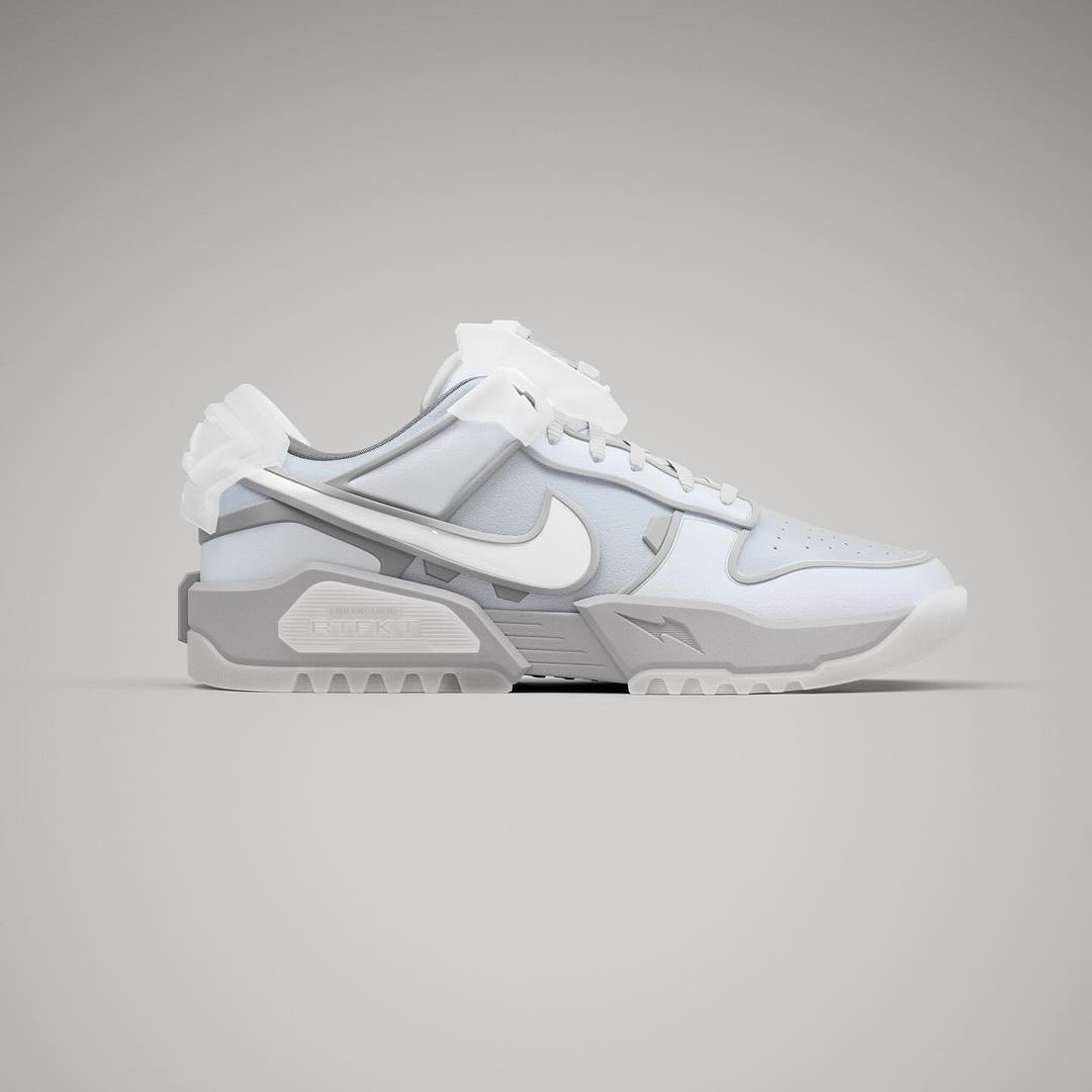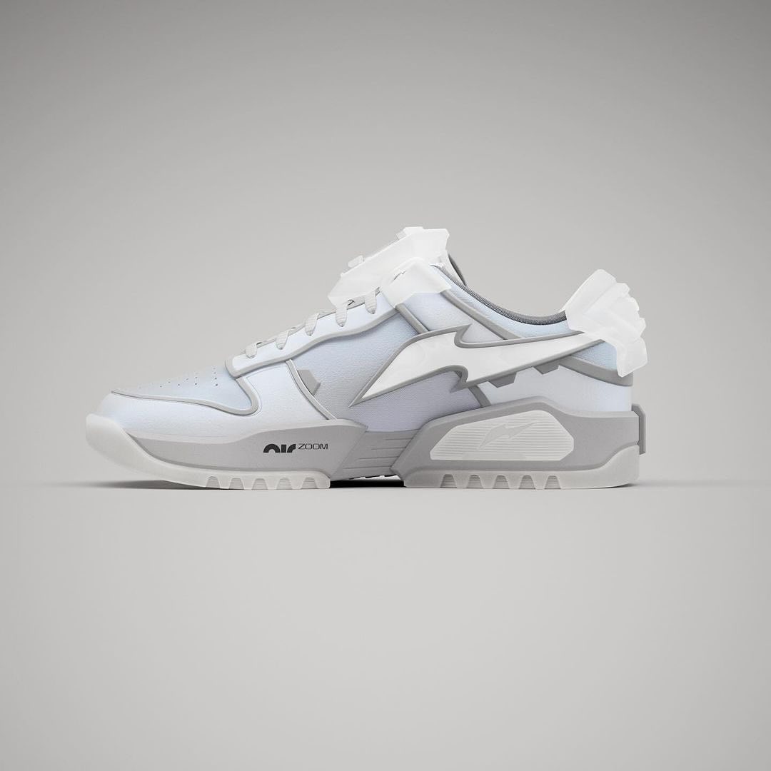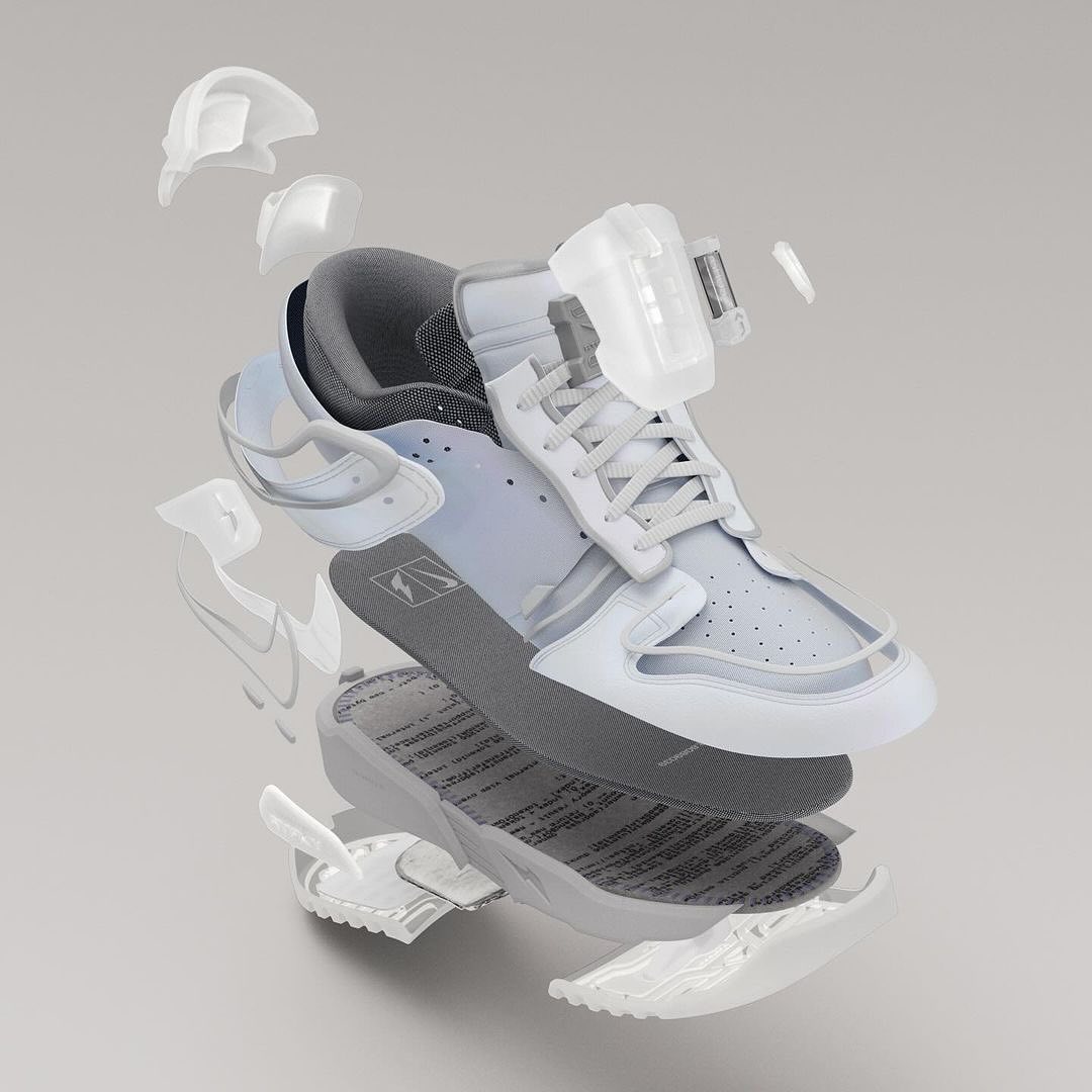 第一双以浅灰色为主调,依旧保留了 RTFKT 经典的科幻属性,虽然配色简单,但却依然吸睛。