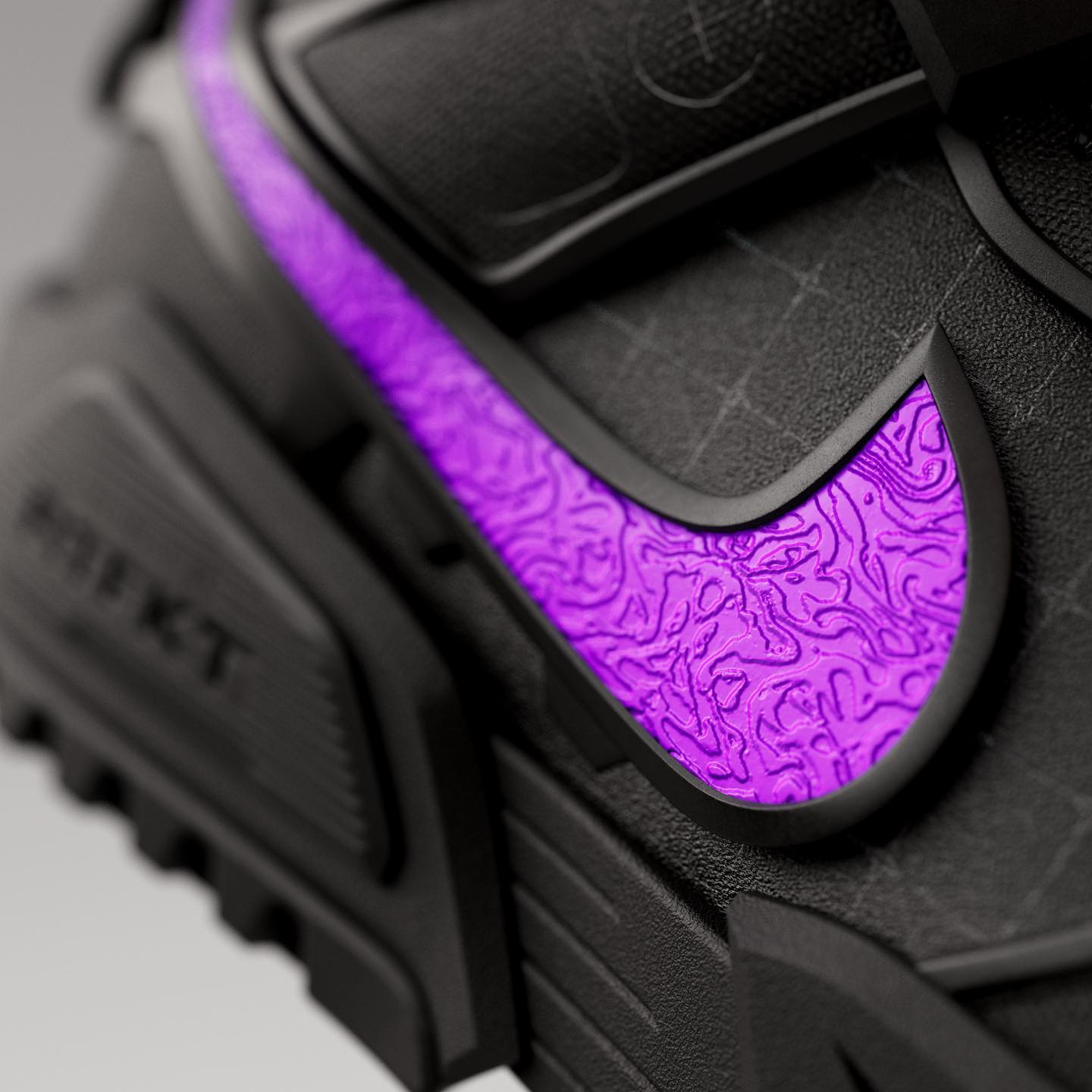 另一双则以黑色、紫色组成,对比上一双而言会更加酷炫,同时也更具未来感。