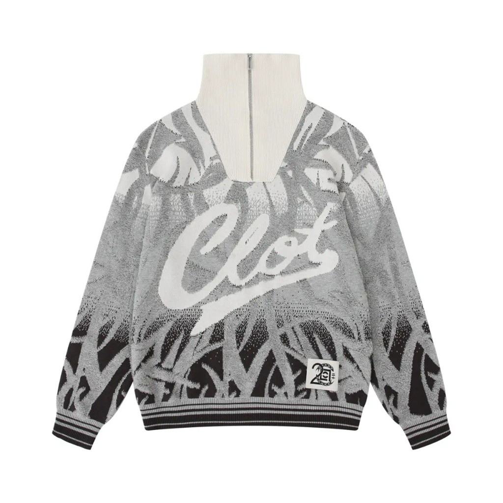 其中提花光晕毛衫拉链夹克、渐变提花针织运动裤以及经典 PU 口袋 T 恤主要彰显了 CLOT 的街头气质。