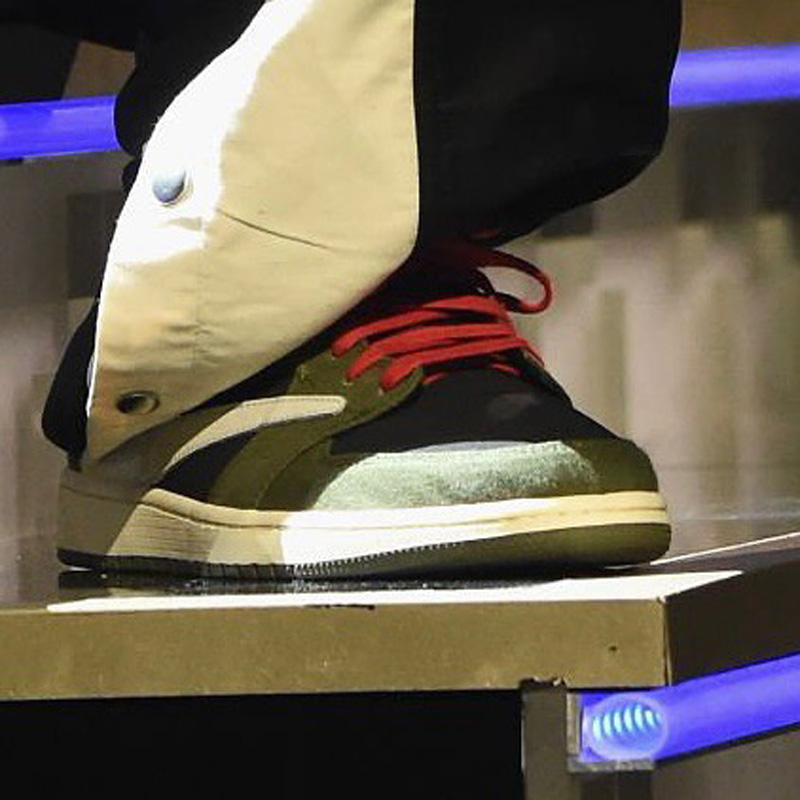 看到这里小编忽然想到,早在去年 10 月 Travis Scott 演唱会期间,他就曾经上脚过一双名为「Grammy」的类似配色。
