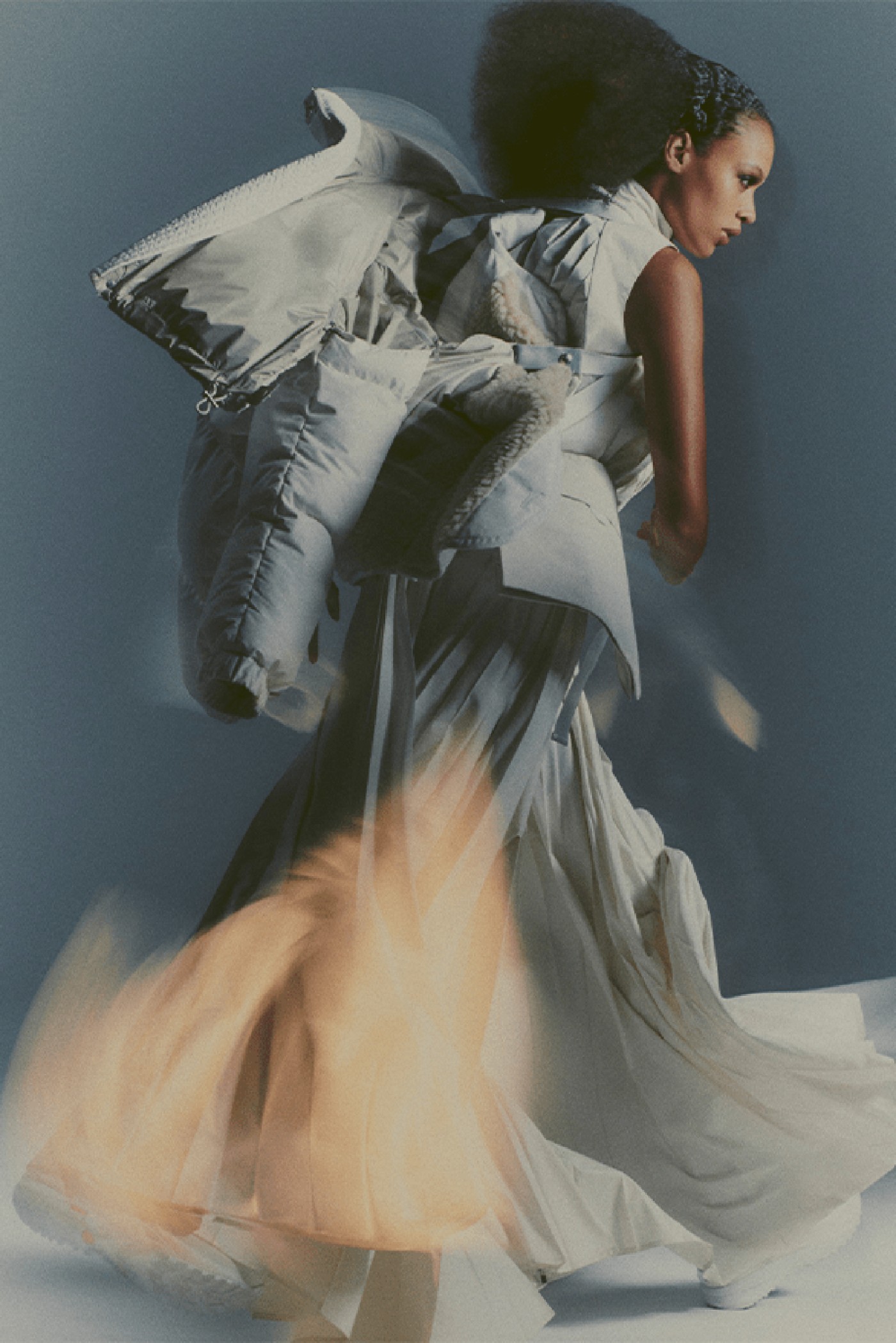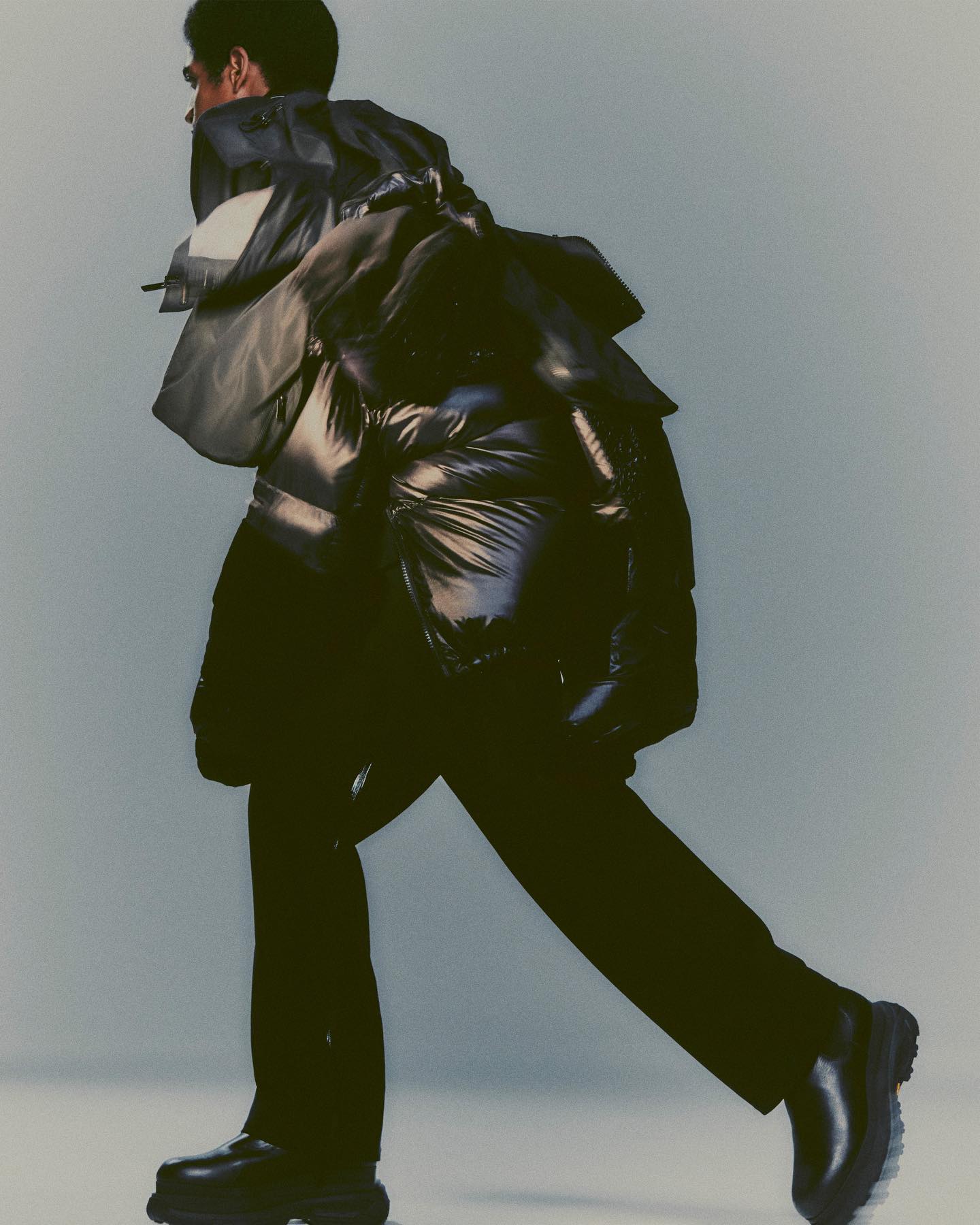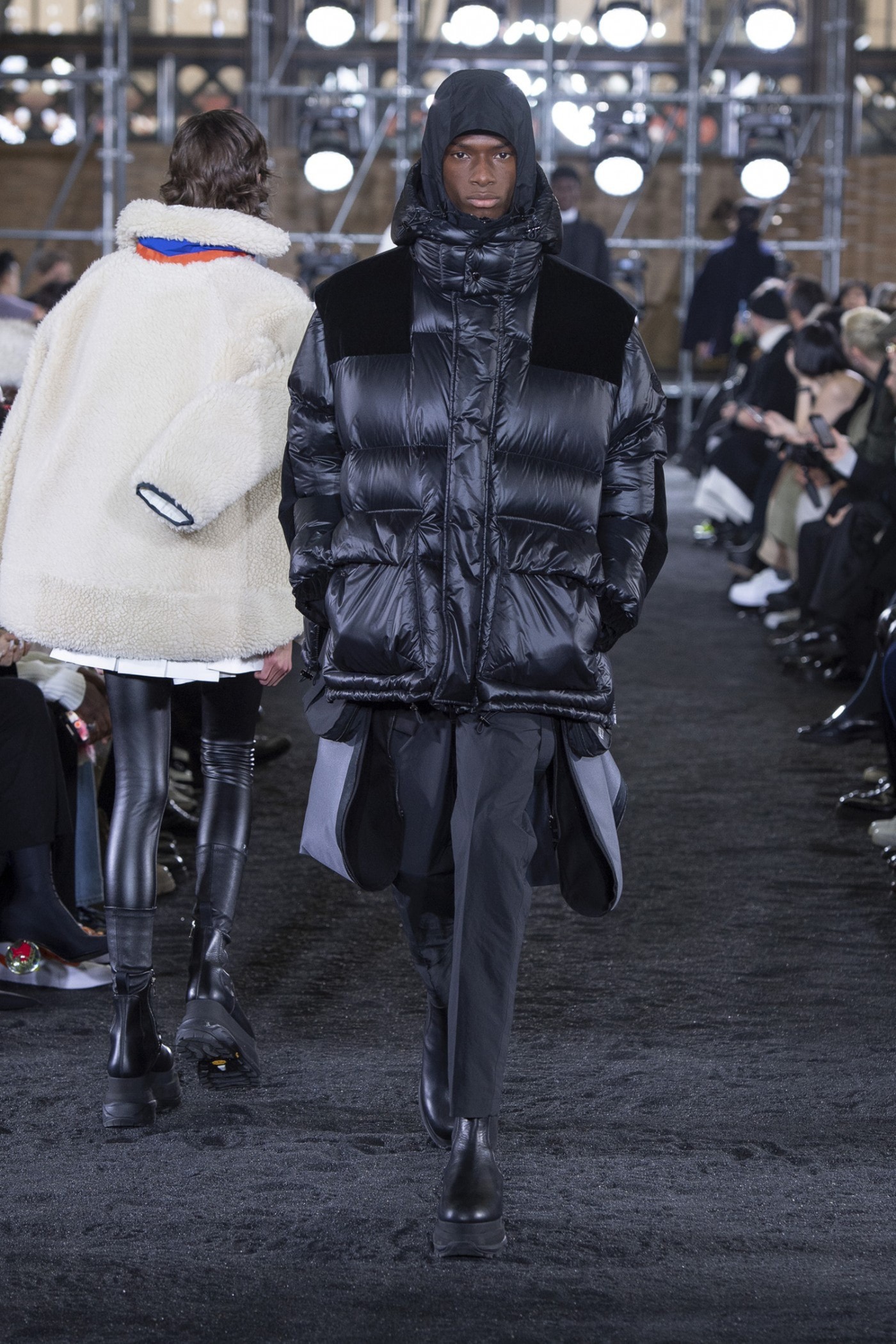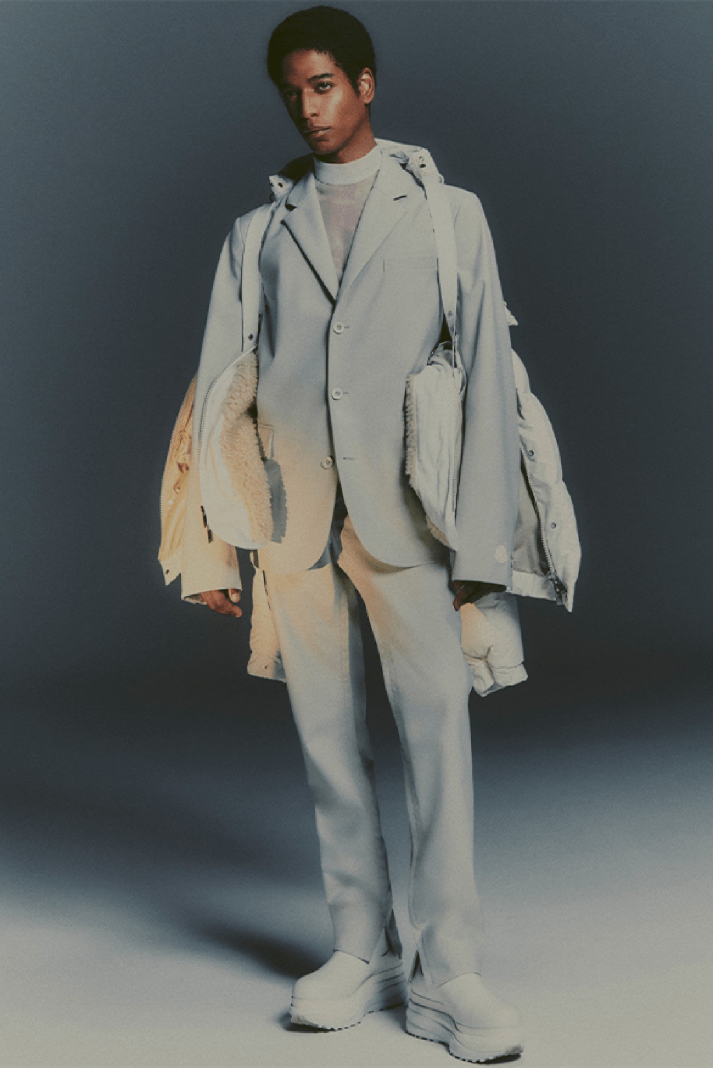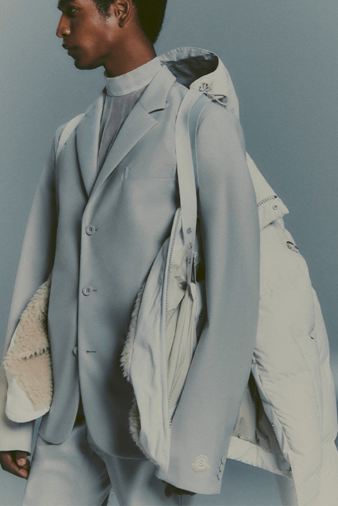 具体造型自然是将 sacai 经典的解构元素附着在了 Moncler 的羽绒服饰之上,为原本造型增添了几分层次感。