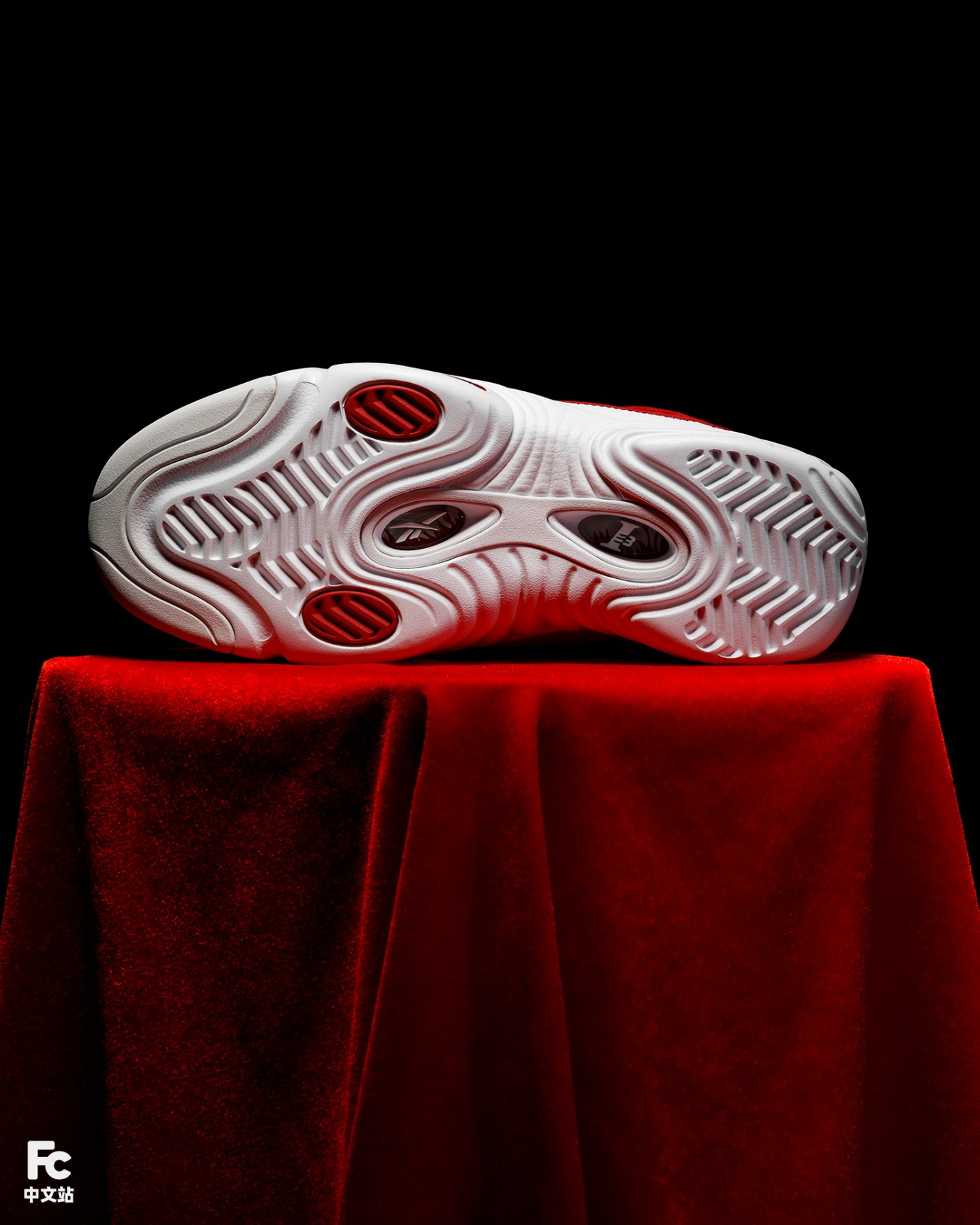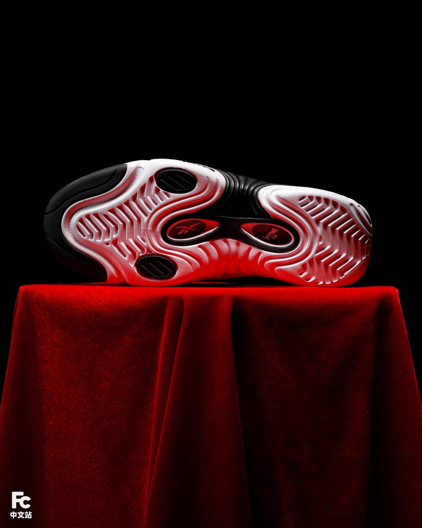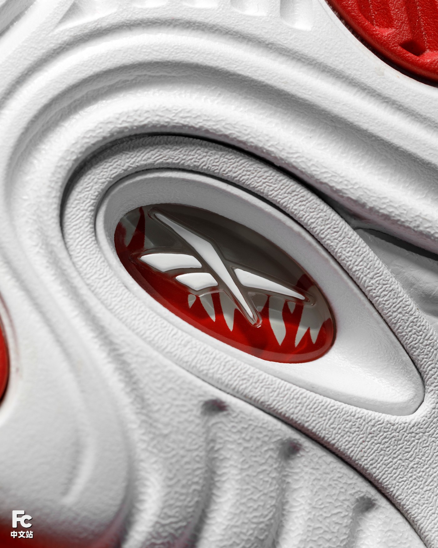 足弓部位依旧保留两处镂空设定,并延续火焰元素衬托的 Reebok 及 I3 Logo。