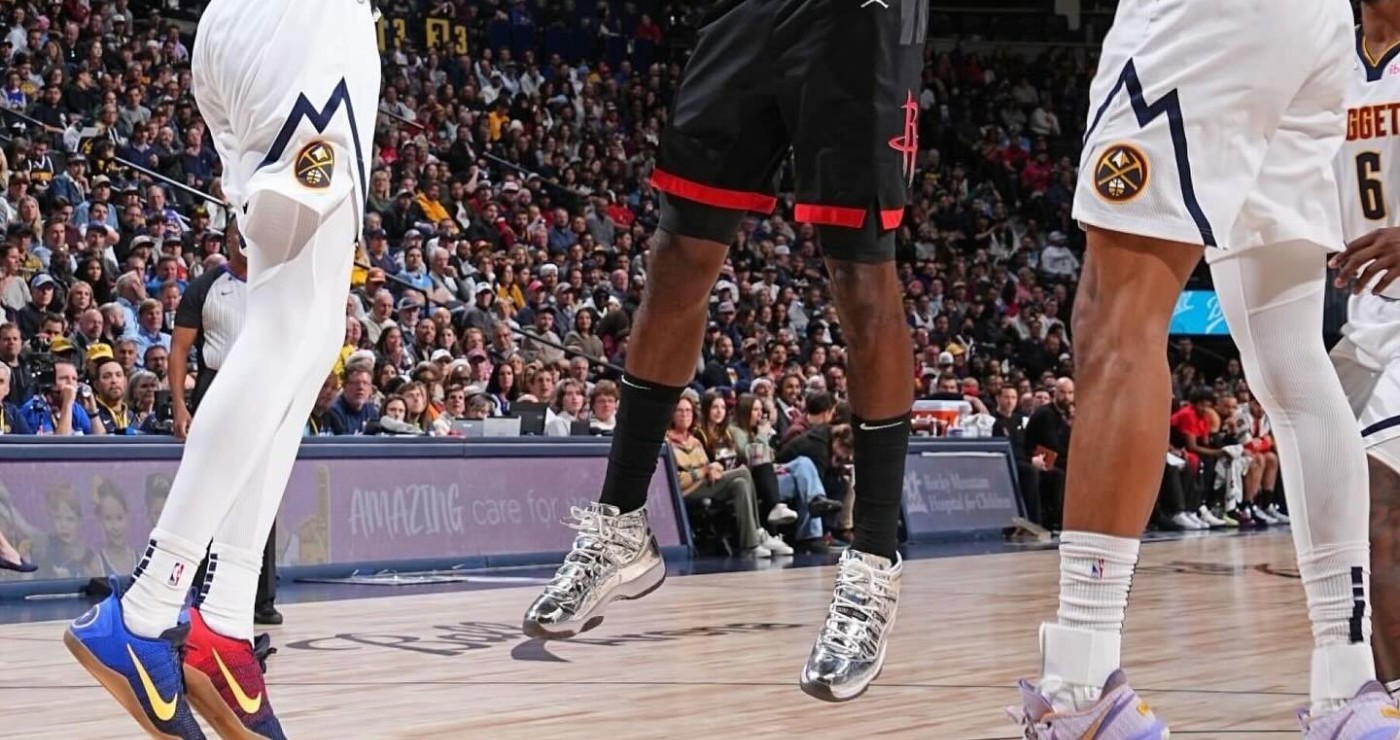 而在昨天火箭与掘金的常规赛中,杰夫·格林上脚了一双「液态银」Air Jordan 11 火遍全网,颜值是真的高,快来一睹为快吧!